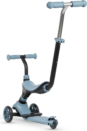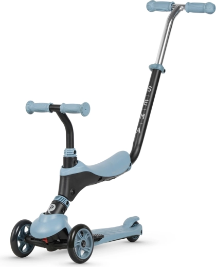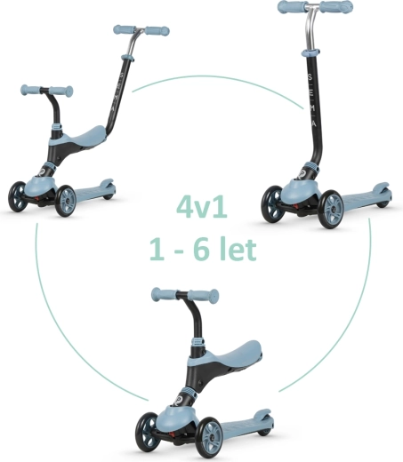 - 3v1 využití: ride-on se sedátkem, balanční koloběžka, samostatná koloběžka