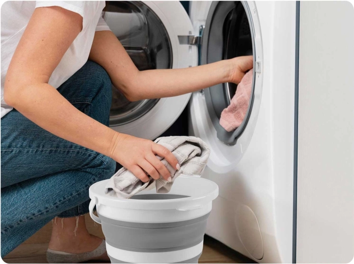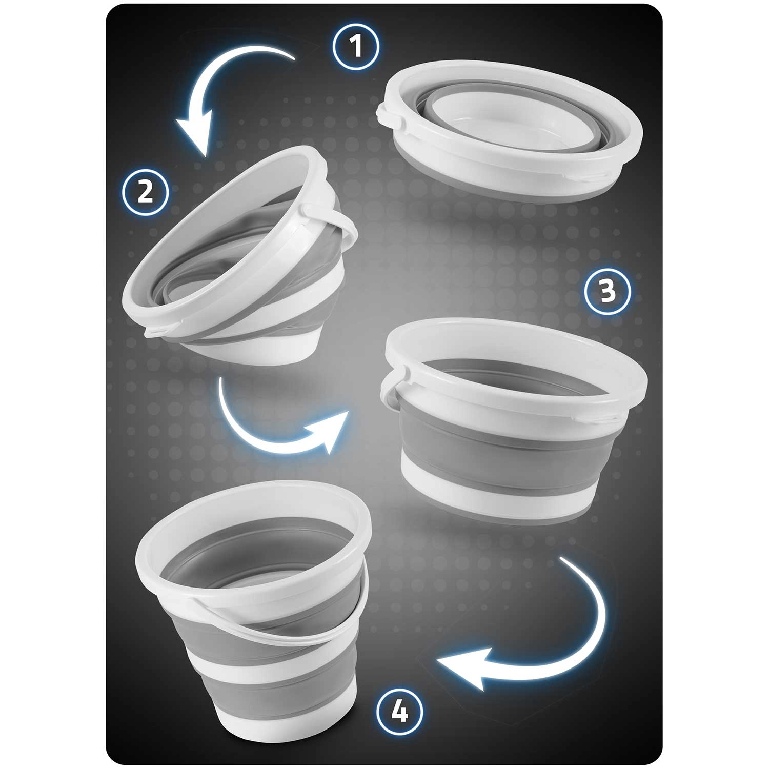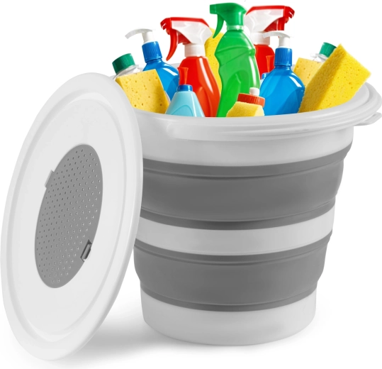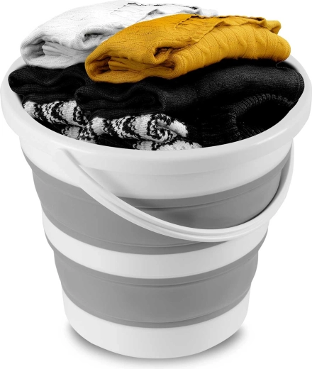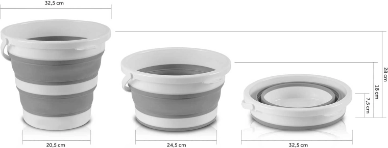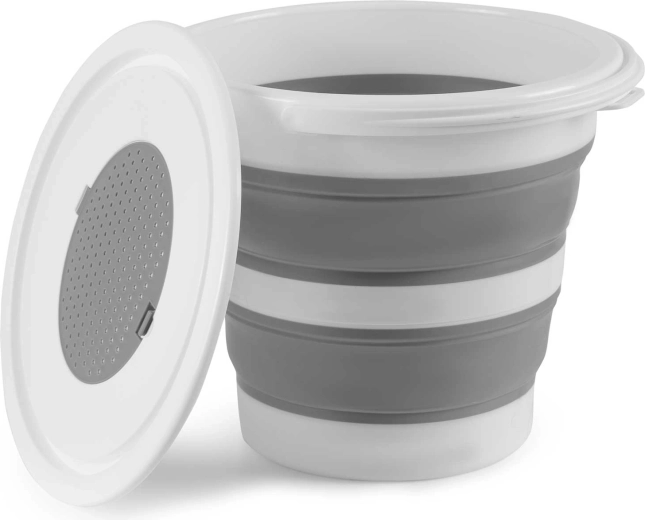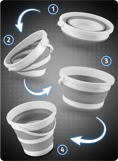 Akordeonové silikonové stěny umožní vědro zcela zploštit pro uložení do skříňky či kufru. Ideální do malých bytů, karavanů i na cesty.