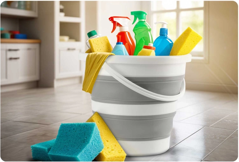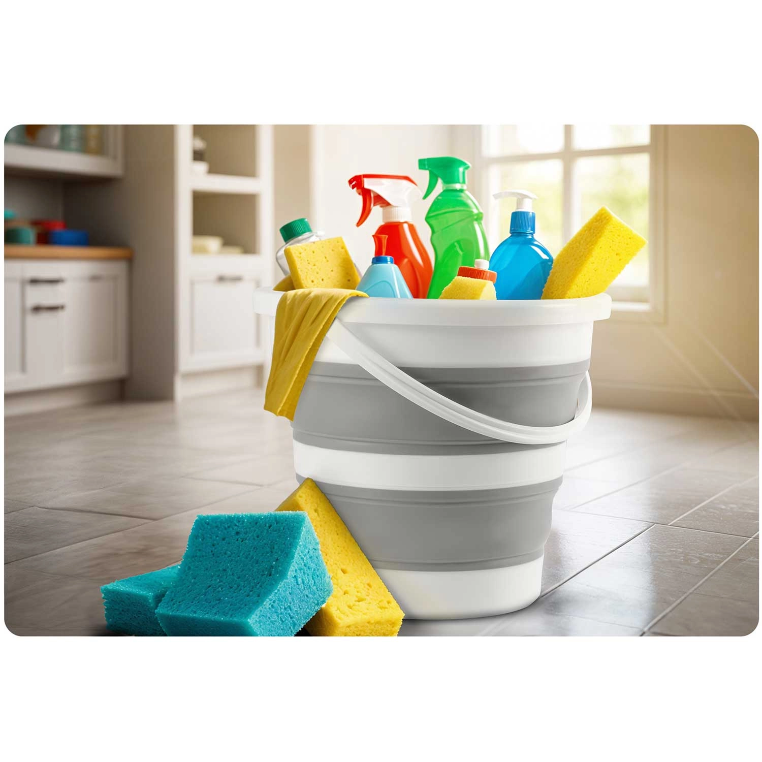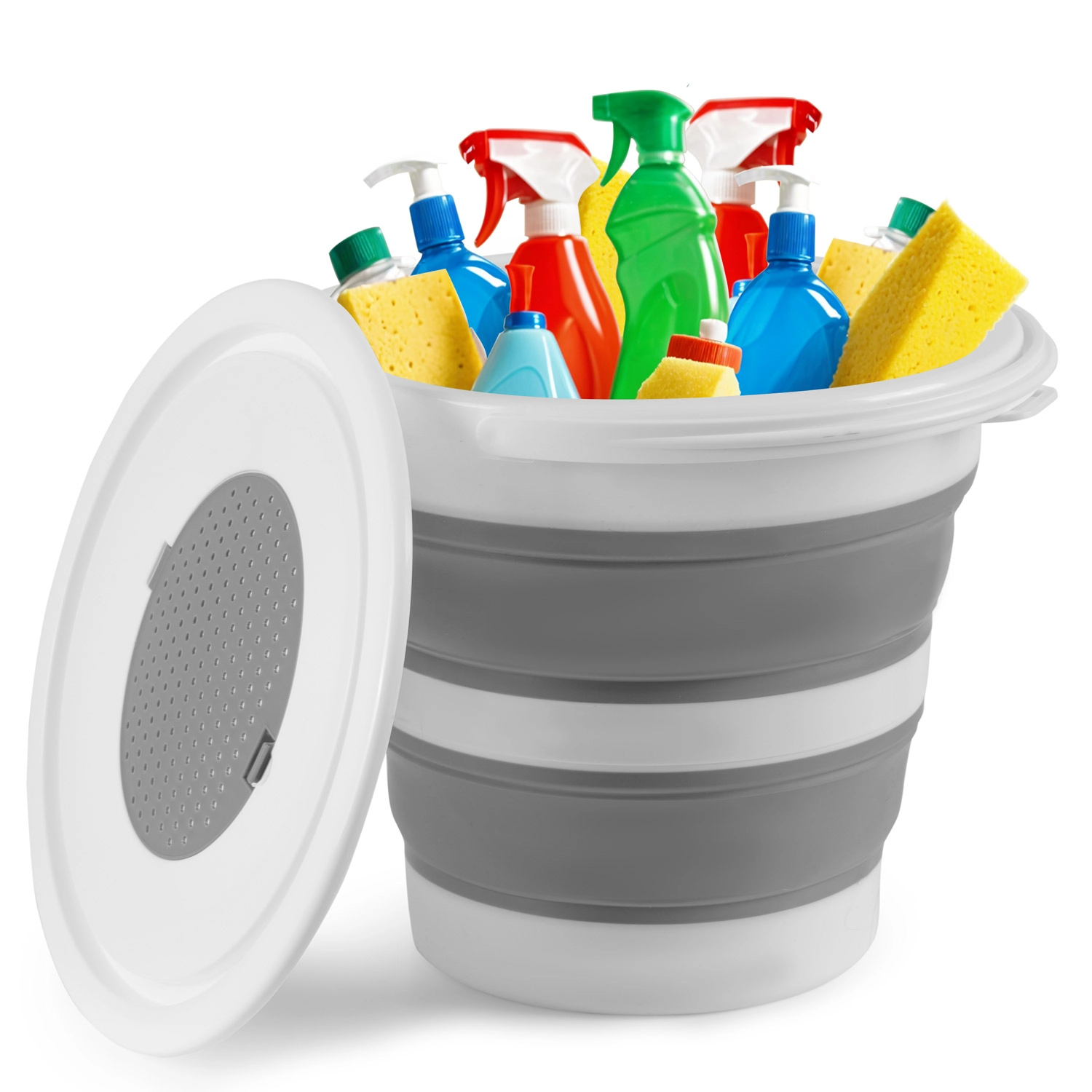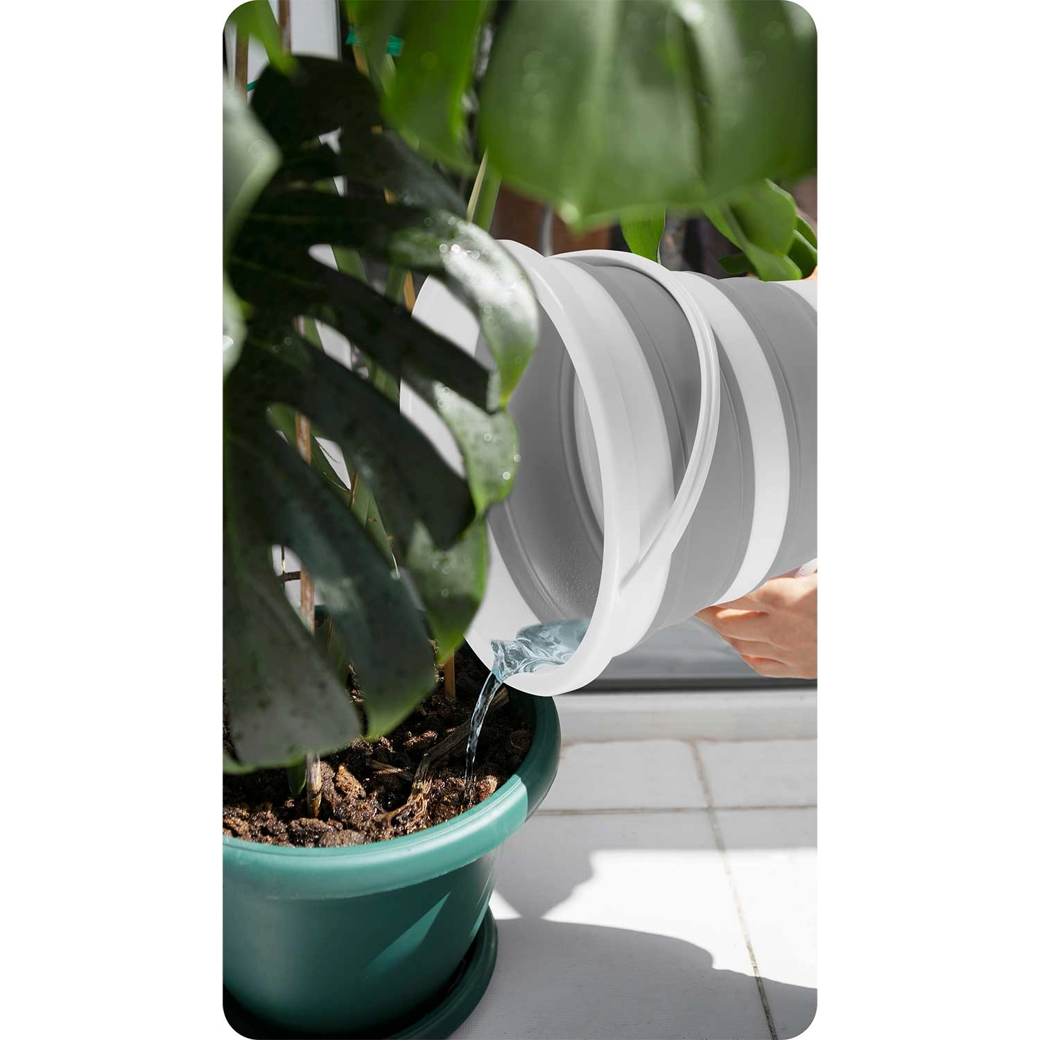 Akordeonové silikonové stěny umožní vědro zcela zploštit pro uložení do skříňky či kufru. Ideální do malých bytů, karavanů i na cesty.