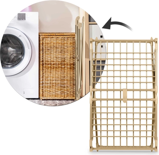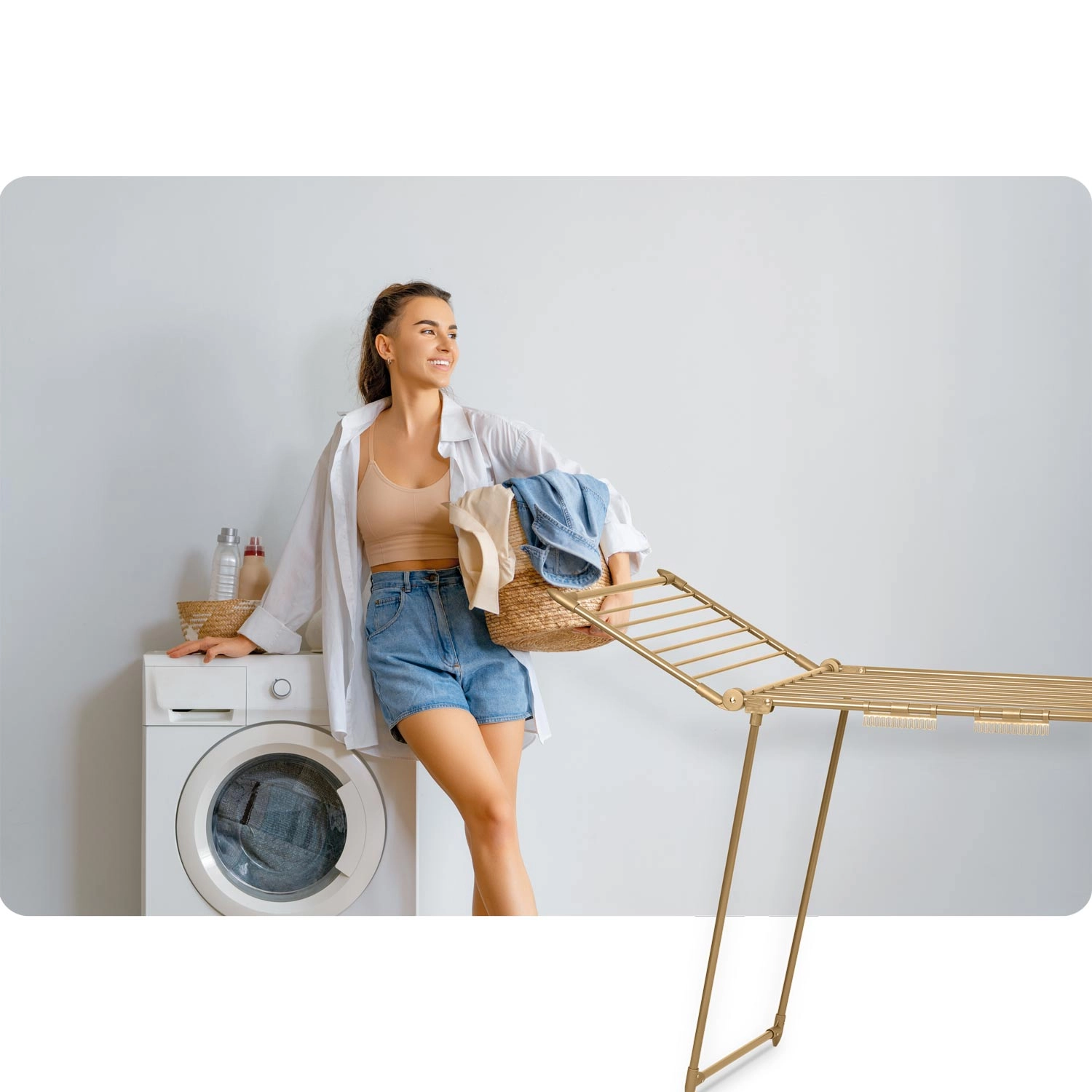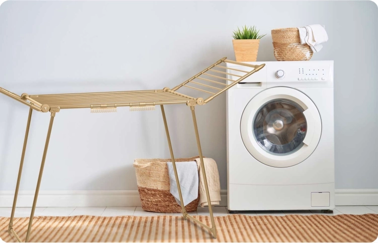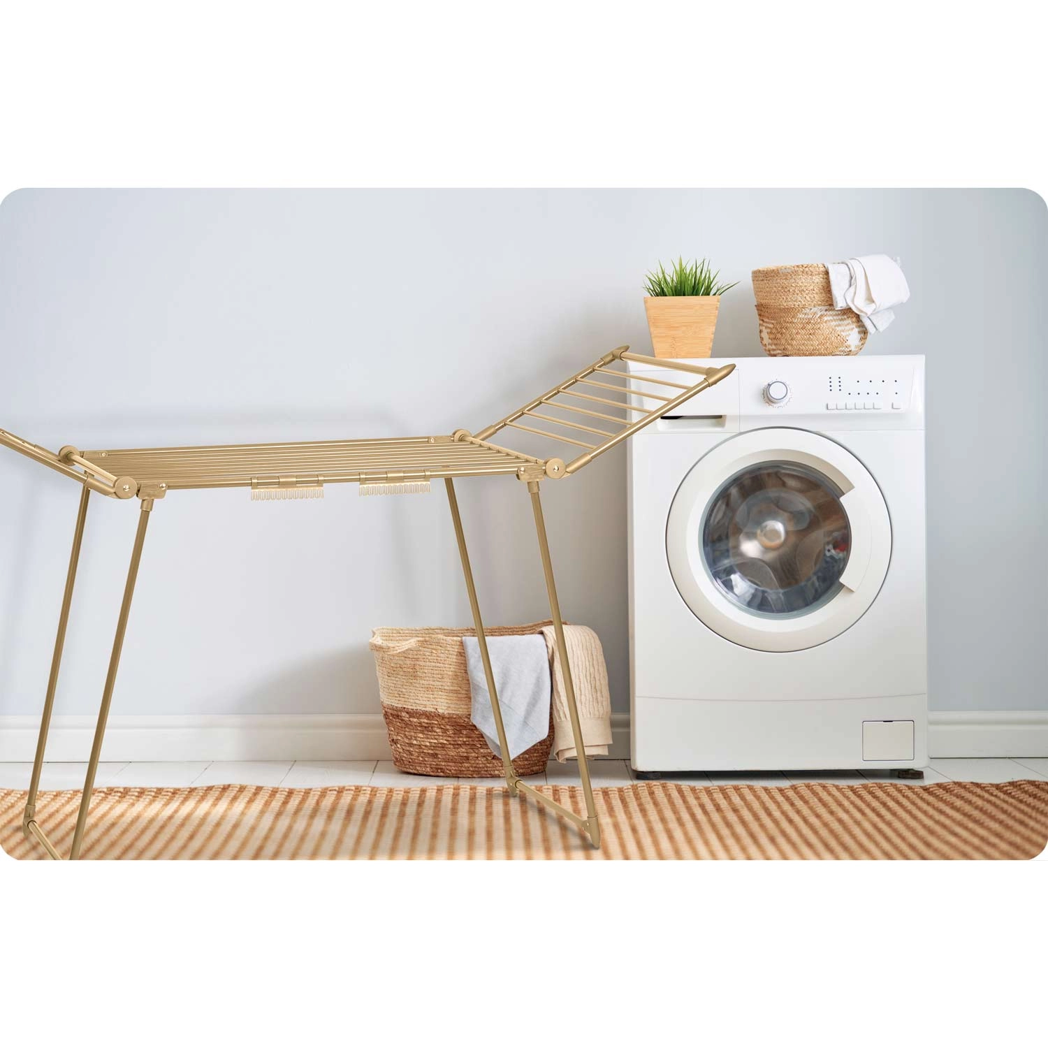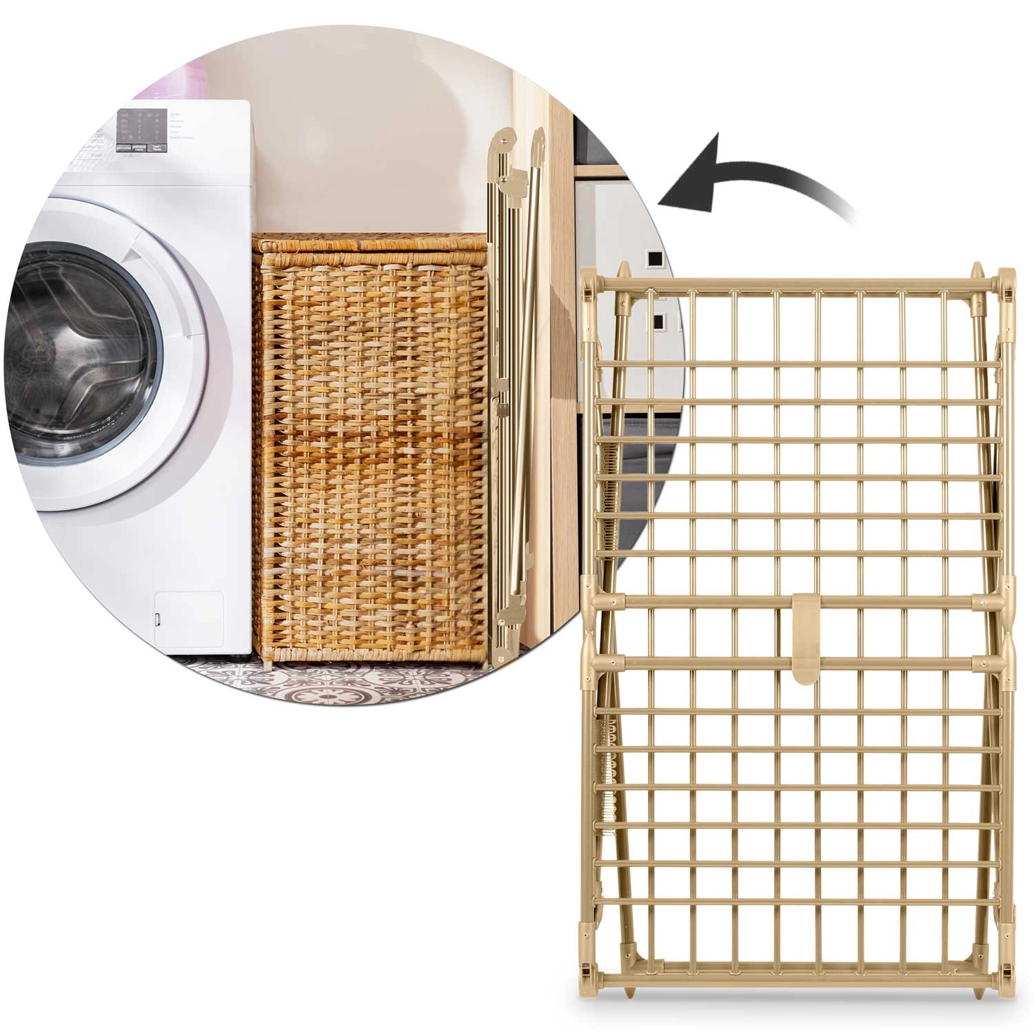 Po dosušení sušák jednoduše sklopíte do plochého tvaru a uložíte vedle pračky nebo do skříně.