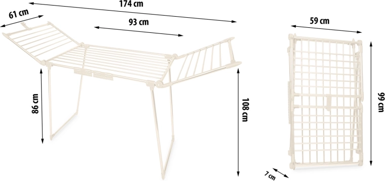 Se dvěma rozkládacími křídly a integrovanými držáky na ponožky a spodní prádlo využijete každý centimetr. Po dosušení sušák jednoduše složíte do kompaktní podoby a uložíte za skříň či pračku.