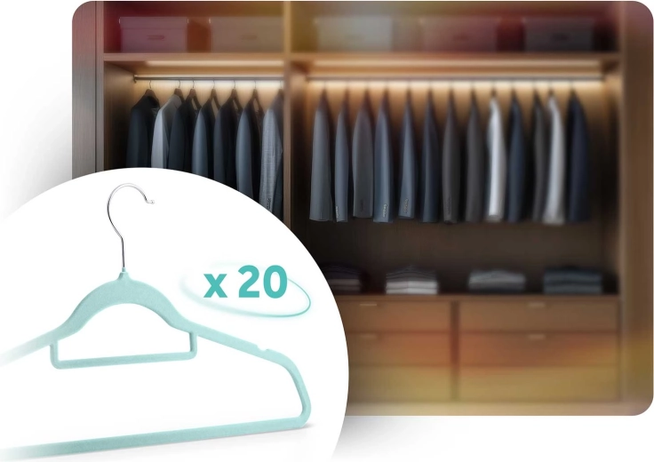 Praktická a stylová sada velurových ramínek MASSIDO přináší pořádek i šetrnou péči o vaše oblečení. Měkký velur tvoří protiskluzový povrch, který brání sklouzávání košil, šatů i sak, zatímco pevné jádro z PP udržuje tvar a neprohýbá se ani pod těžšími kusy.