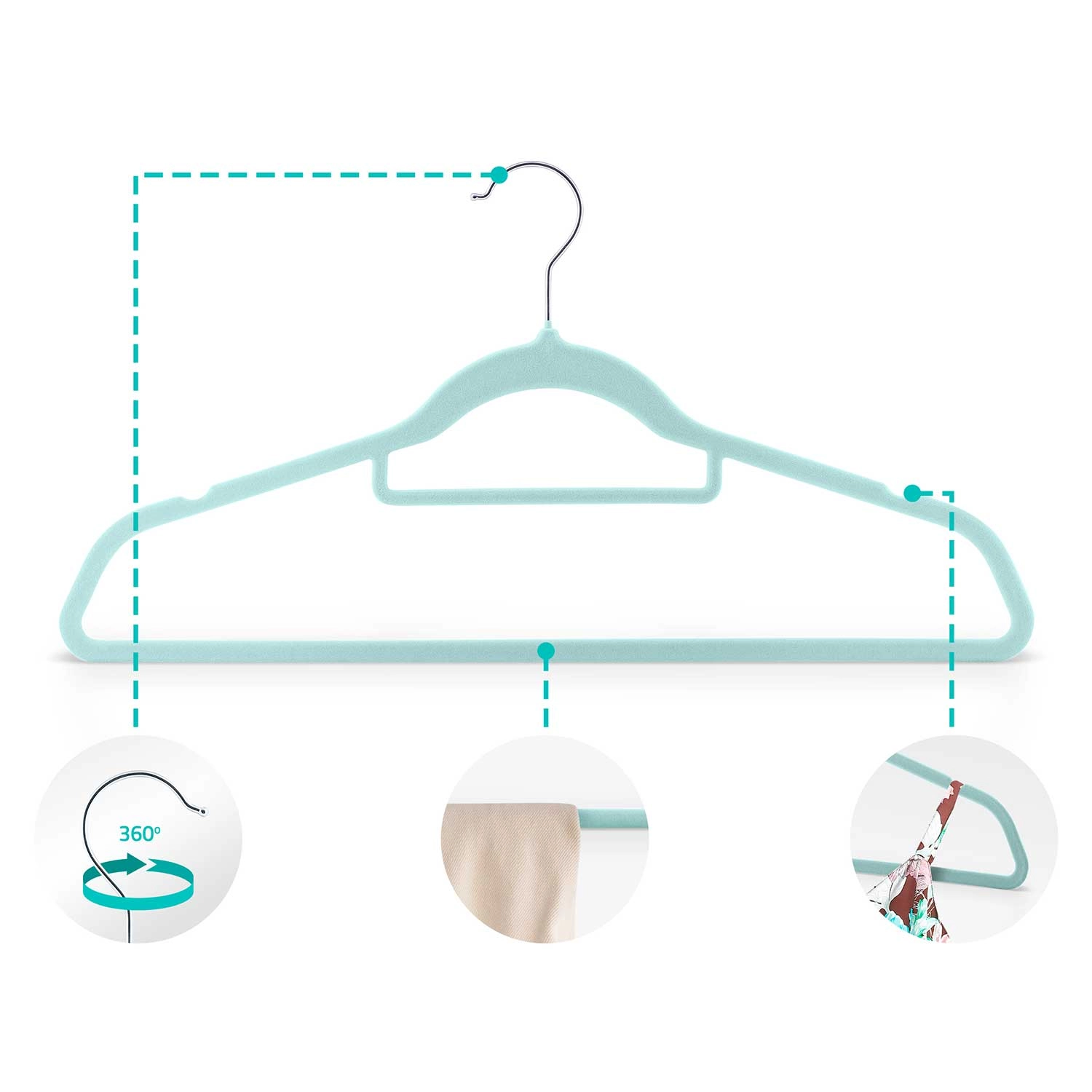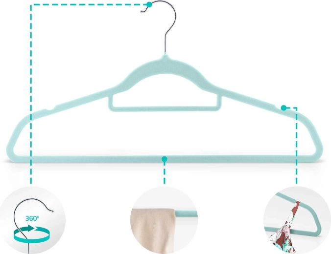 Díky otočnému kovovému háčku snadno třídíte a věšíte oblečení z jakéhokoli směru. Spodní lišta je ideální pro kalhoty, šály nebo šátky a praktické zářezy drží ramínka šatů a topů. Tenké tělo ramínka šetří místo, takže do skříně pohodlně uložíte více oděvů.