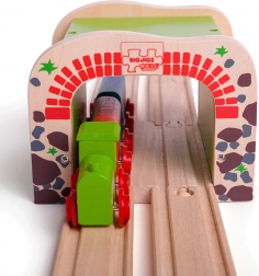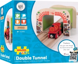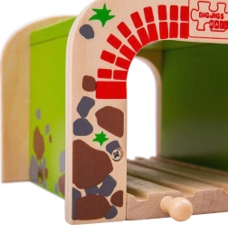 Dřevěný dvojitý tunel BIGJIGS RAIL přináší do světa dřevěných vláčkodrah více akce a plynulejší provoz. Díky dvoukolejnému průjezdu mohou najednou projíždět dva vláčky, což podporuje společnou hru a rozvoj koordinace. Pevná konstrukce a atraktivní motiv cihel a kamene dodají trati realistický vzhled.
