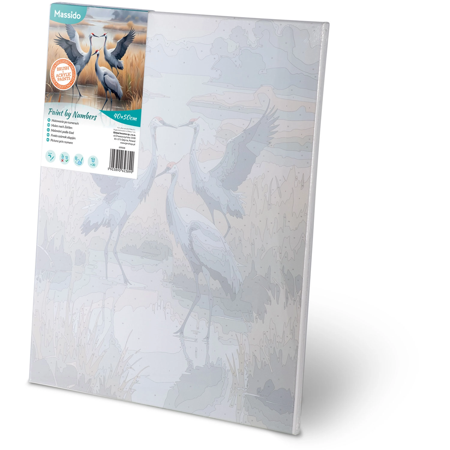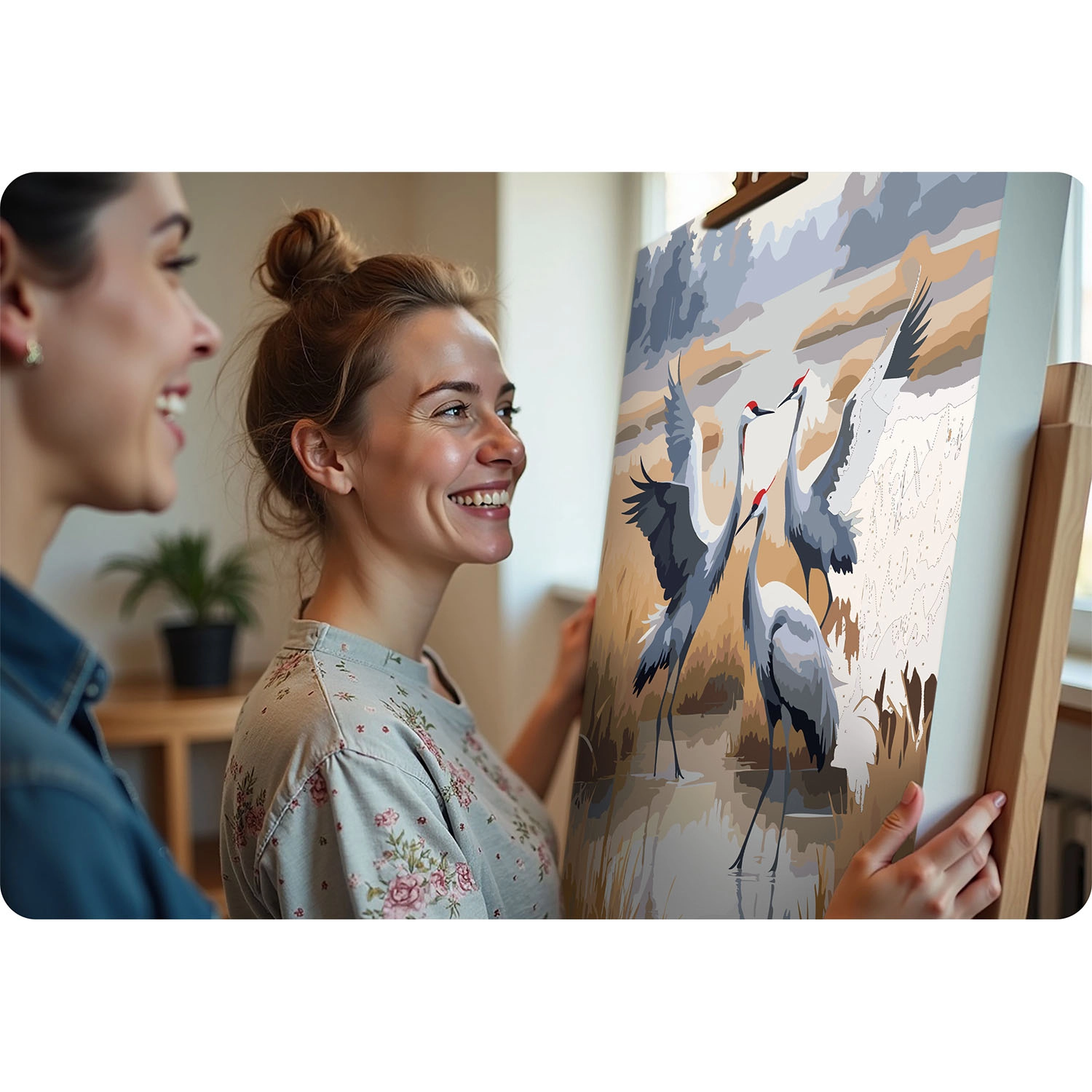 Kreativní relax pro každého. Předtištěné, číslované plátno vás povede krok za krokem a díky barevnému podkladu s jemným vzorem bude malování plynulé i pro úplné začátečníky. Syté, krycí akrylové barvy zajistí krásný výsledek bez prosvítání a motiv jeřábů dodá interiéru elegantní, přírodní atmosféru.