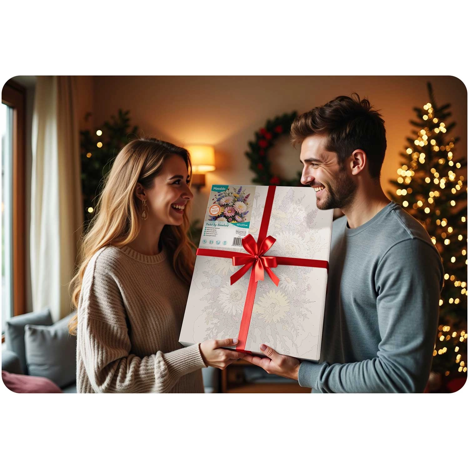 V balení najdete vše, co potřebujete: od připraveného plátna přes 3 precizní štětce až po komplet pro zavěšení. Postup je jednoduchý – vyberte číslo, naneste barvu a sledujte, jak se obraz mění před očima. Skvělá kreativní zábava pro jednotlivce, páry i rodiny.