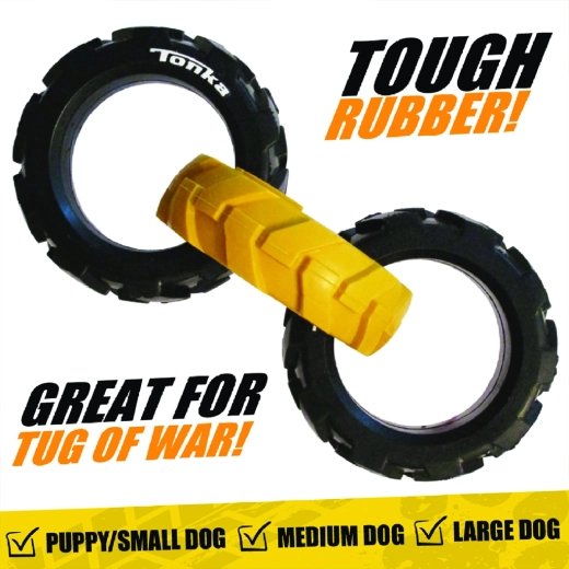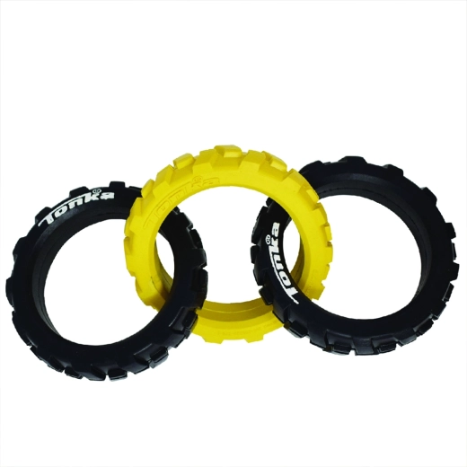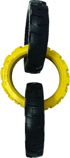 Hračku Tonka tvoří tři robustní kroužky s pružným, pneumatikám podobným vzorem, které skvěle padnou do tlamy a ruky. Díky kombinaci odolné gumy a chytrého tvaru si poradí s intenzivním taháním a zároveň je bezpečná pro každodenní zábavu.