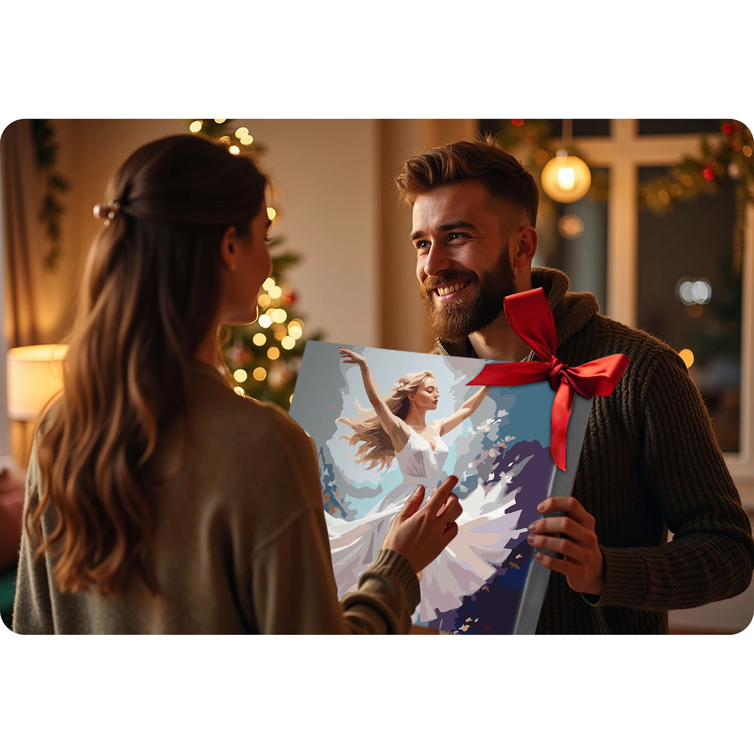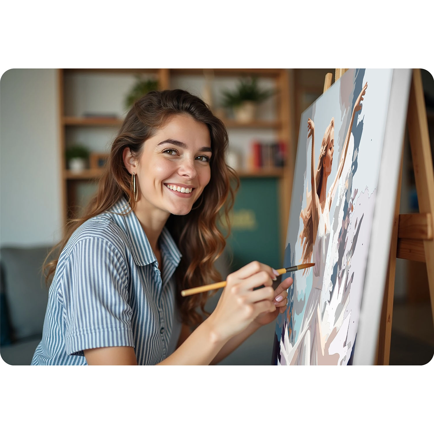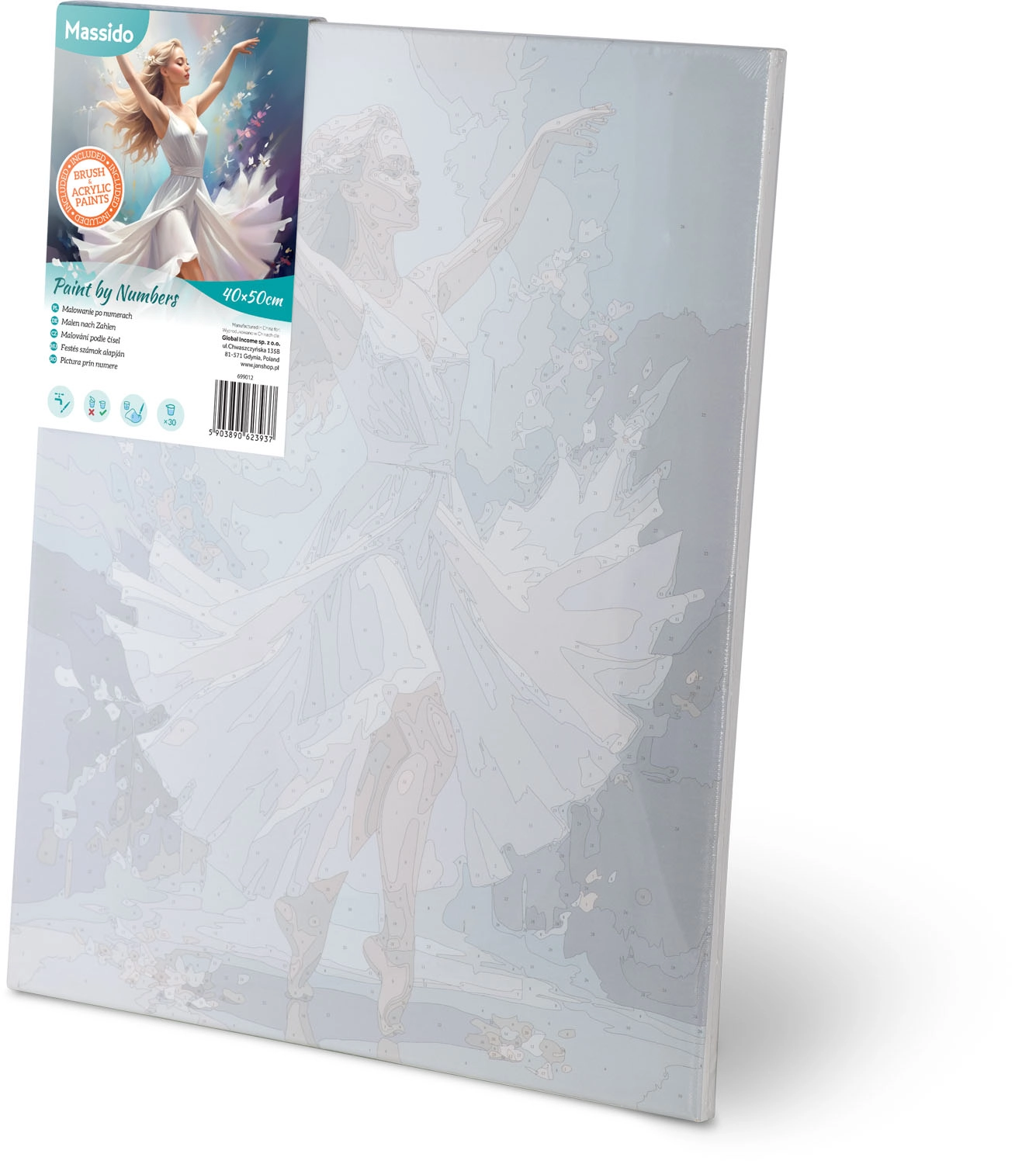 Proměňte volné chvíle v kreativní zážitek. Sada MASSIDO s motivem Tančící ženy nabízí vše, co potřebujete k vytvoření elegantního obrazu: napnuté plátno na rámu s očíslovanými zónami, až 30 sytých akrylových barev a tři precizní štětce. Díky barevné podmalbě a jasnému značení je malování intuitivní a relaxační, ideální pro děti i dospělé.