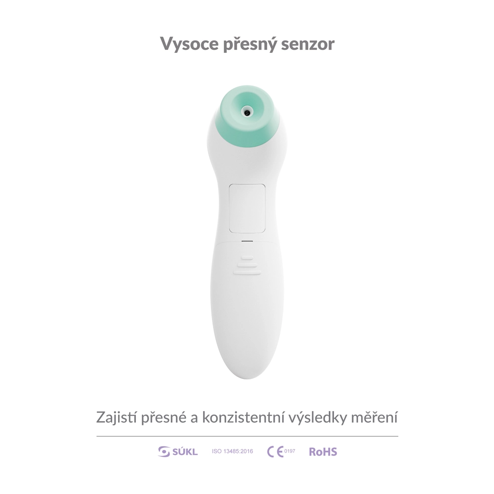 Infračervená technologie zajistí velmi rychlé a stabilní výsledky. Stačí namířit na střed čela a stisknout – ideální při chřipce i pro spící děti.
