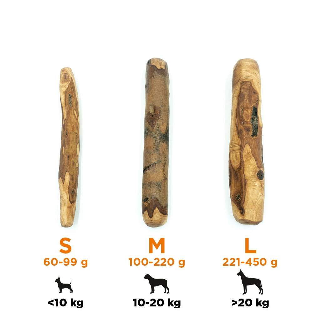 Tato přírodní tyčinka z olivového dřeva je ideální pro malá plemena a psy s intenzivní potřebou žvýkat. Ručně vybraný materiál z italských olivovníků je pečlivě vysušen a ošetřen olivovým olejem, který dodává příjemné aroma a zvyšuje atraktivitu pro psy.