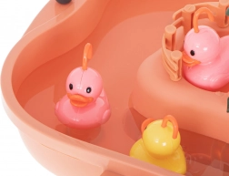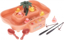 Udělejte z každé hry chytání kačenek veselou výzvu. Sada obsahuje bazének s ostrovem, 5 kačenkami, 2 pruty a 2 podběráky, takže si děti mohou užít soutěžení i samostatnou hru. Díky příjemným barvám a pohyblivým prvkům hra přirozeně rozvíjí postřeh a zručnost.