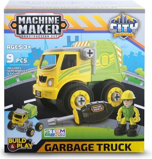 Objevte zábavnou stavebnici CITY SERVICE od Machine Maker, která dětem od 3 let umožní postavit hasičský vůz, odtahovku nebo popelářský vůz. Každé vozidlo obsahuje šroubovák, figurku, samolepky a návod, takže si malí stavitelé procvičí jemnou motoriku, logické myšlení a kreativitu v duchu STEM učení.