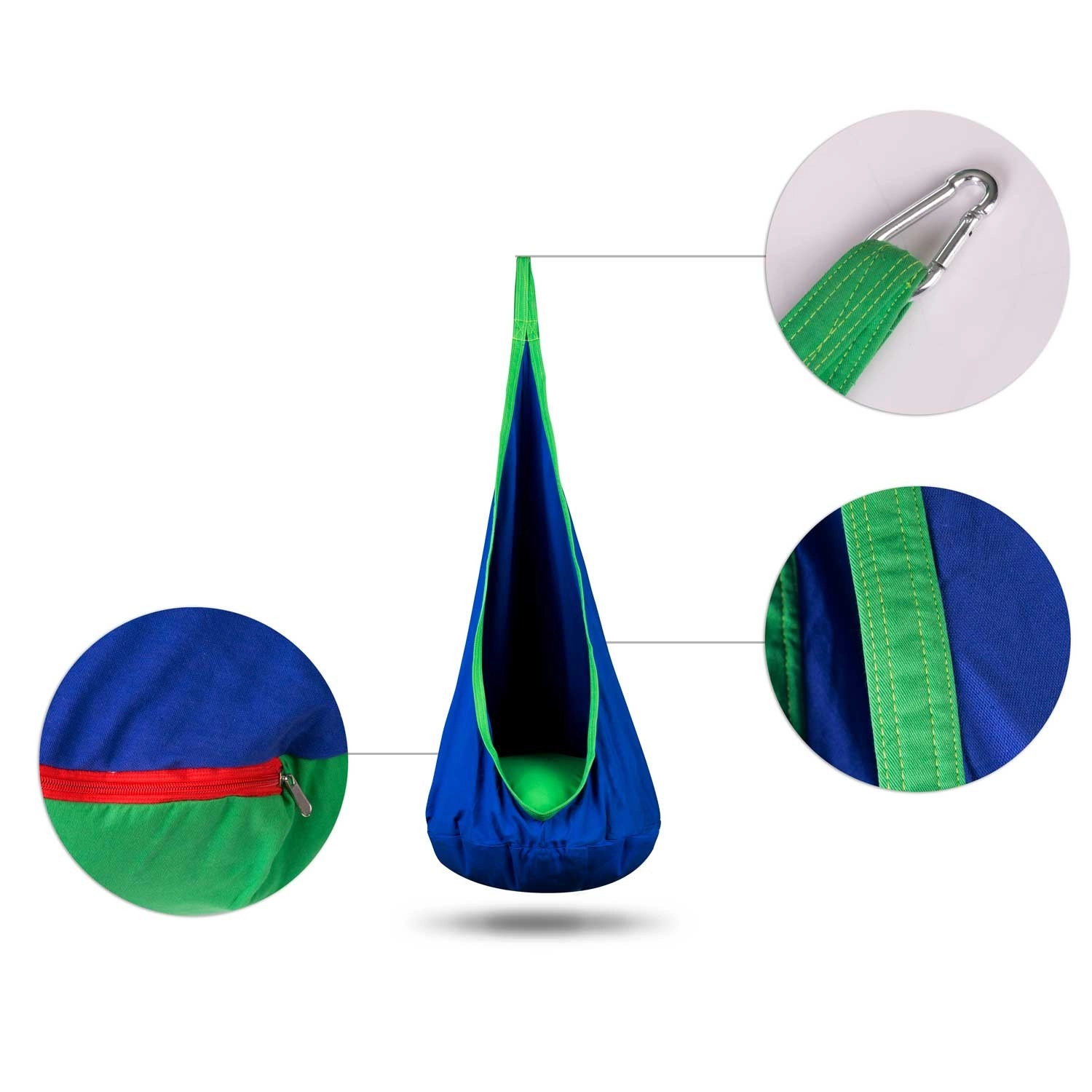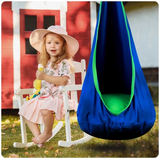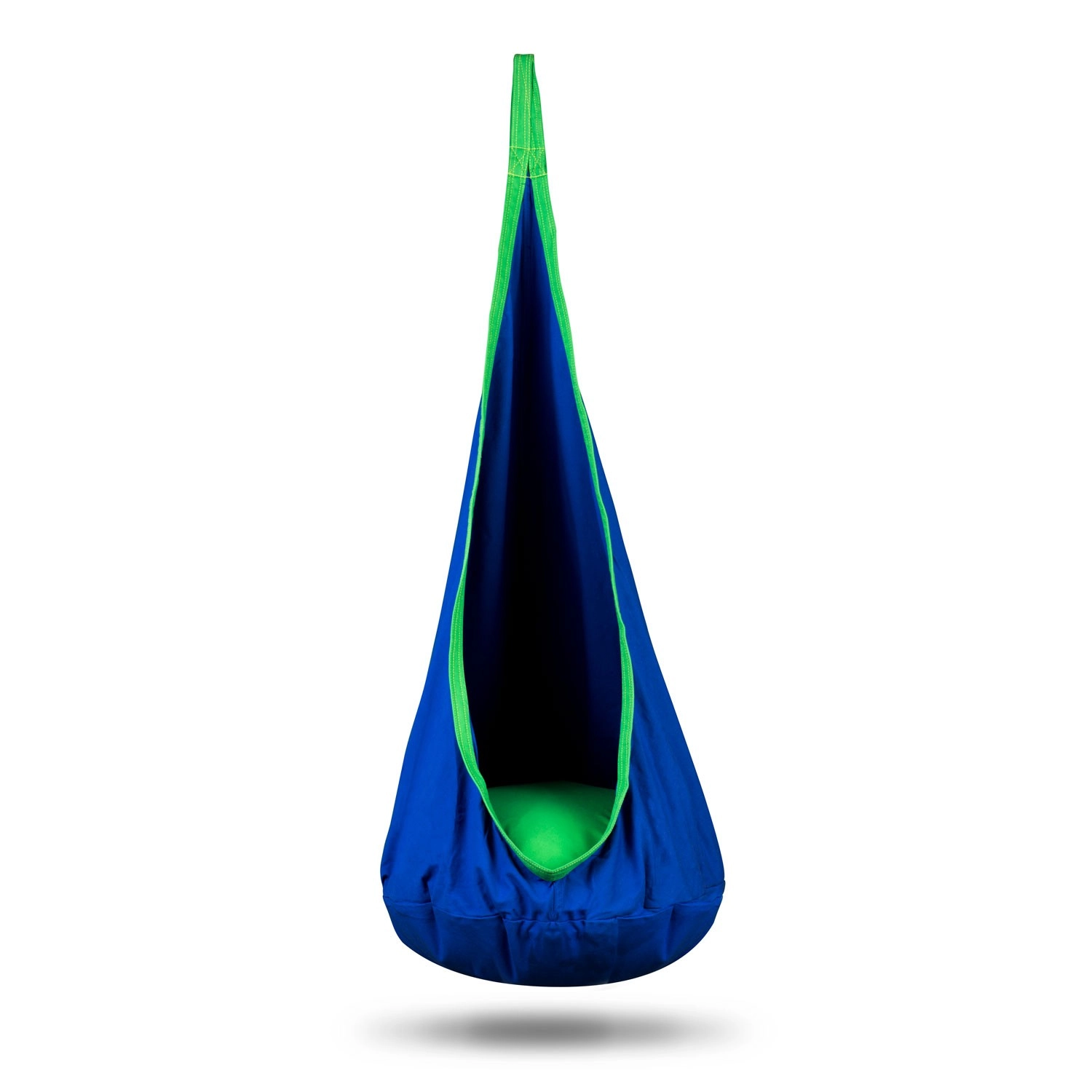 Pohodlný dětský závěsný kokon NEO‑SPORT v modré barvě je skvělé místo pro relax i jemné houpání doma i na zahradě. Nabízí měkký sedák s polštářem, pevné švy a odolný materiál s nosností až 80 kg. Látkový potah lze prát v pračce a po složení zabere minimum místa.