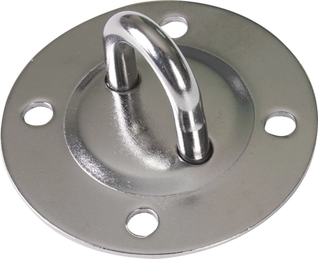 Masivní kovová základna s okem a třemi montážními otvory zajišťuje stabilní uchycení i při pravidelném houpání.