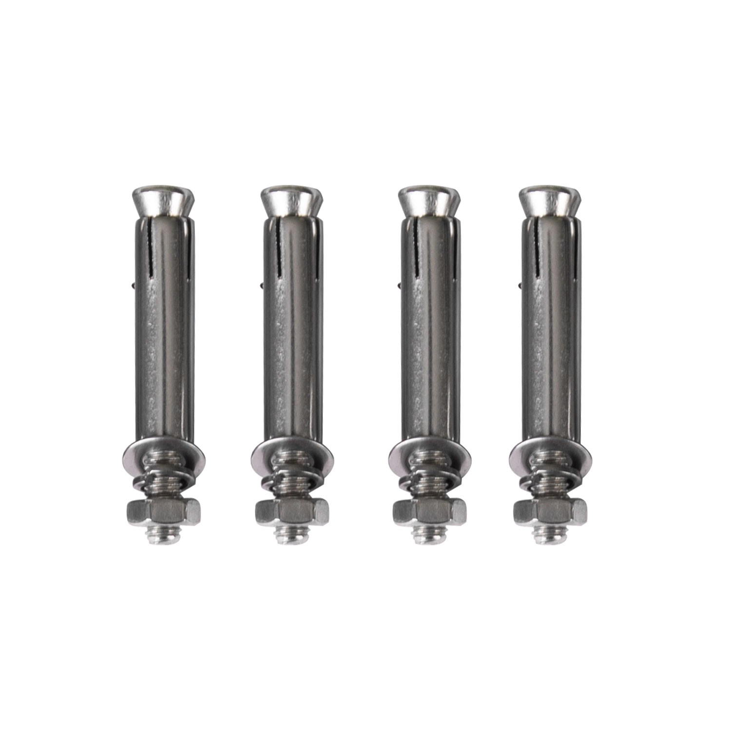 Čtyři rozpěrné šrouby s podložkami a maticemi pro spolehlivé ukotvení do betonu či plných cihel.