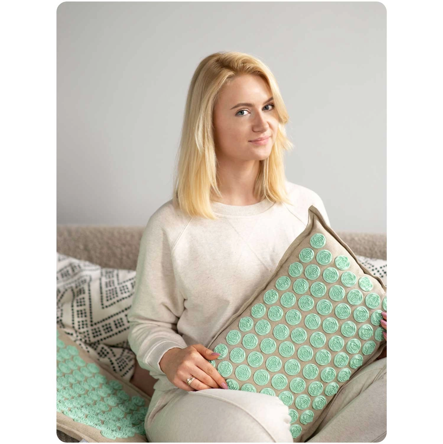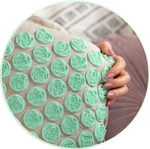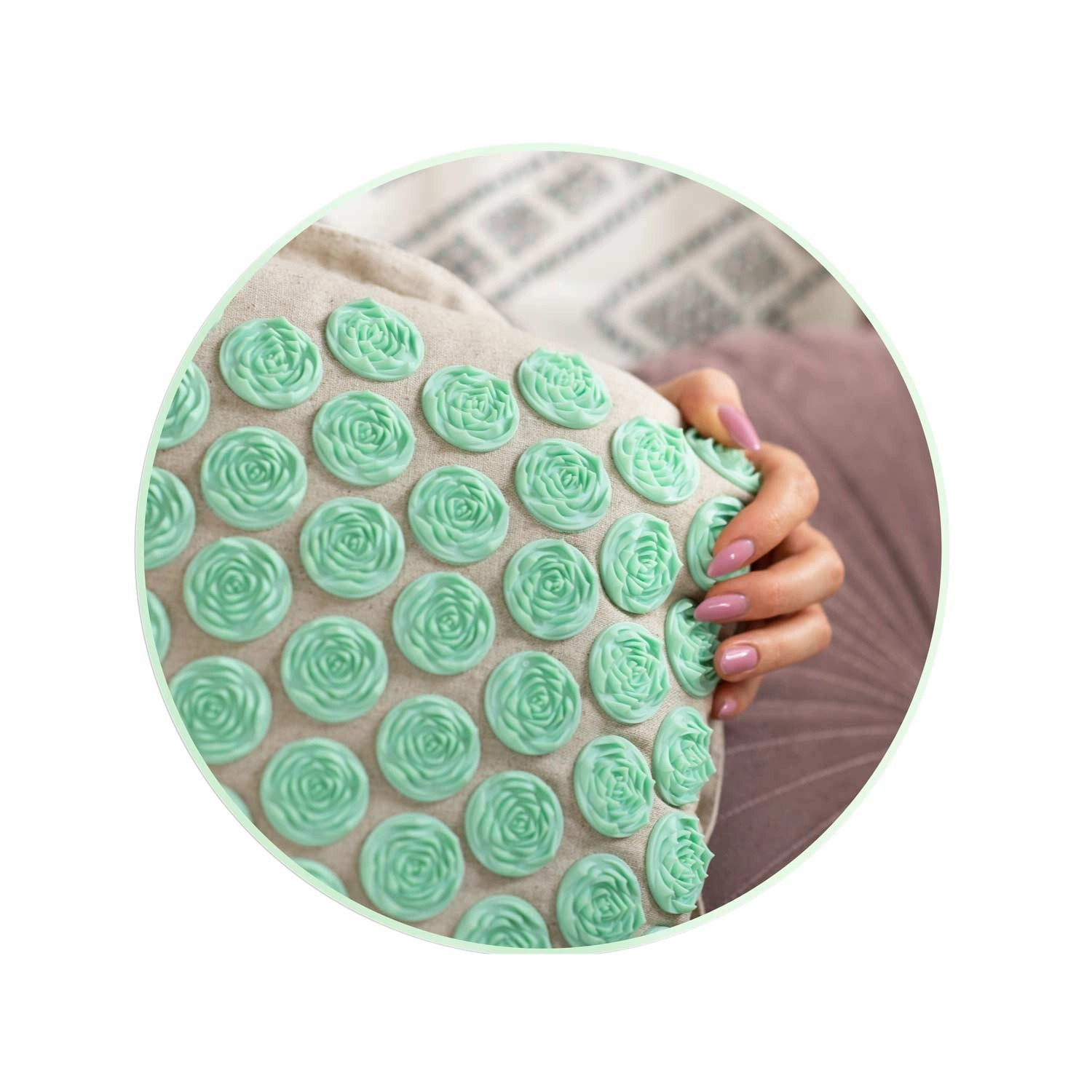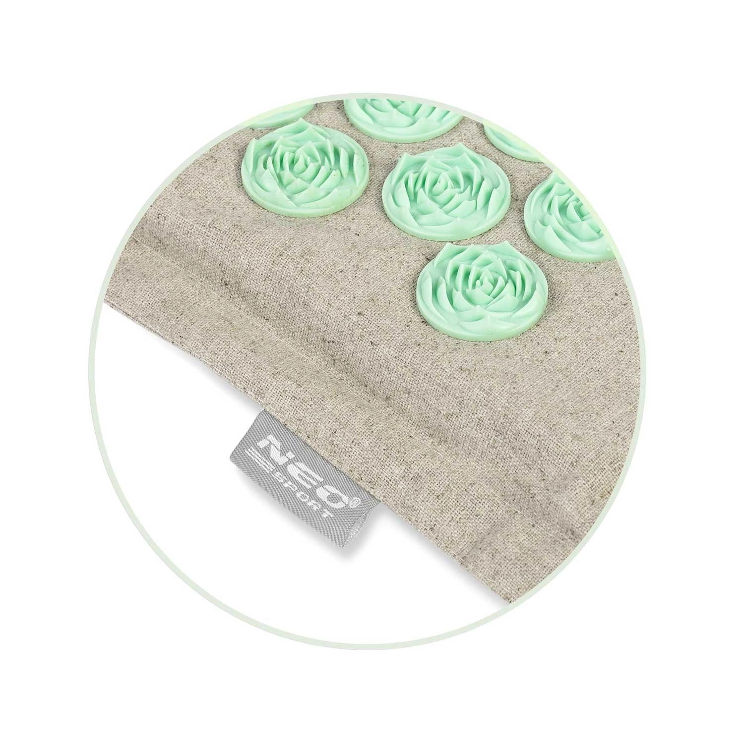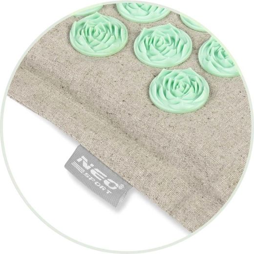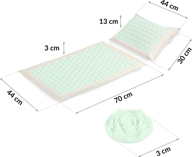 Na podložce je 181 a na polštáři 76 růžic s jemnými hroty, které stimulují tlakové body, podporují prokrvení a uvolňují napětí ve svalech pro rychlejší regeneraci.