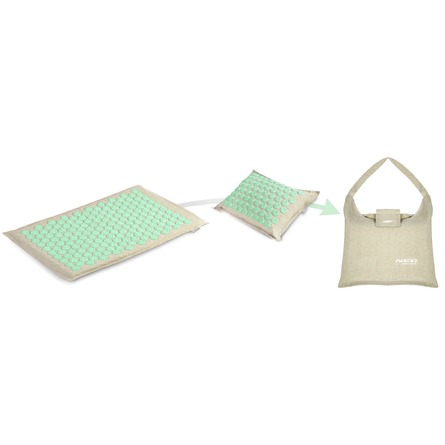 Ulevte si od napětí a bolesti s akupresurním setem, který kombinuje podložku a polštář s celkem 257 akupresurními růžemi (181 na podložce, 76 na polštáři). Přírodní kokosové vlákno uvnitř, příjemný potah z lnu a bavlny a snadno snímatelný povlak na suchý zip pro jednoduché čištění. Včetně elegantní přenosné tašky pro pohodlné skladování a cestování.