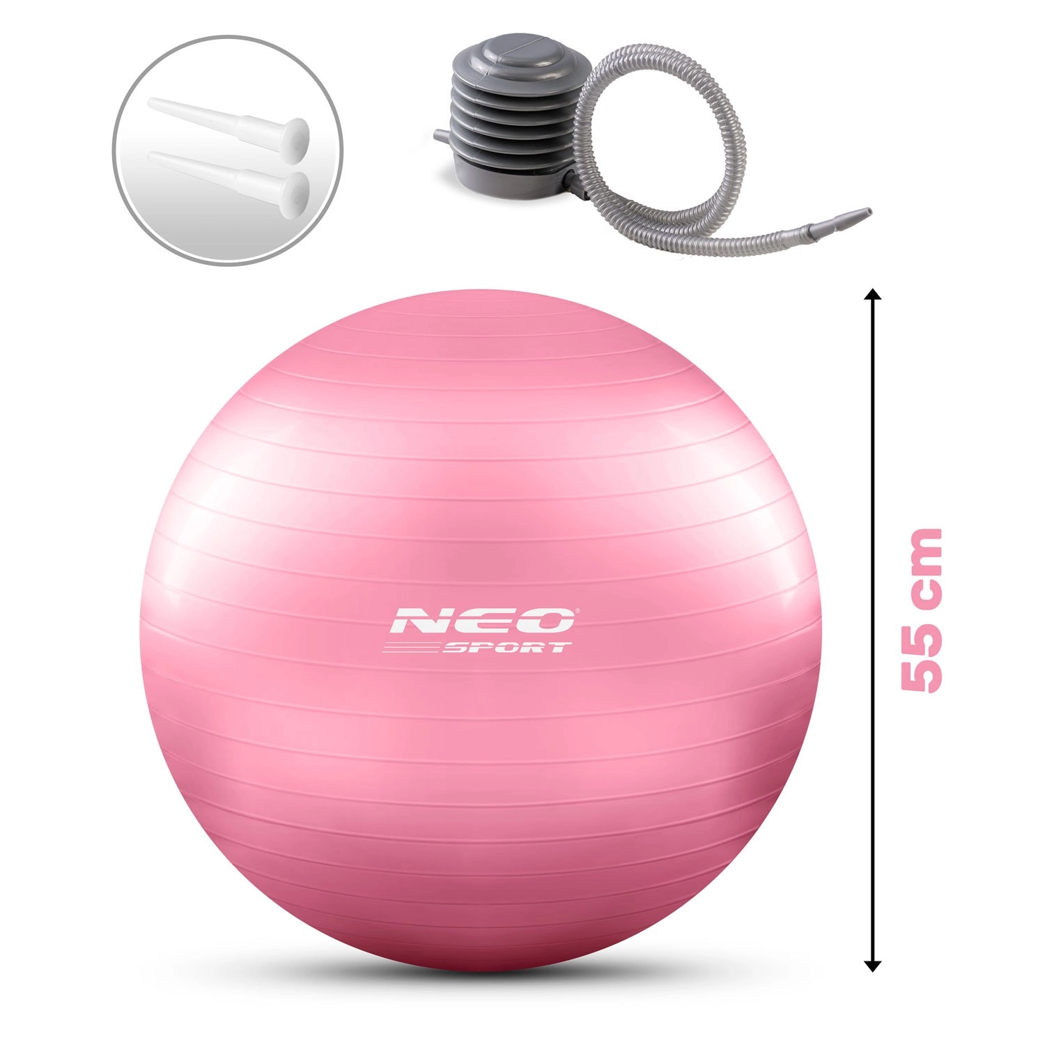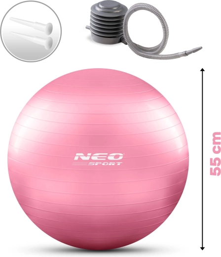 Růžový gymnastický míč NEO SPORT 55 cm podpoří posílení středu těla, zlepší rovnováhu a mobilitu a uleví zádům při dlouhém sezení. Díky bezpečnostní technologii anti-burst se míč pomalu vyfoukne při prasknutí, což minimalizuje riziko zranění. Protiskluzová textura s kruhovými prstenci poskytuje jistý úchop a stabilitu na podložce.