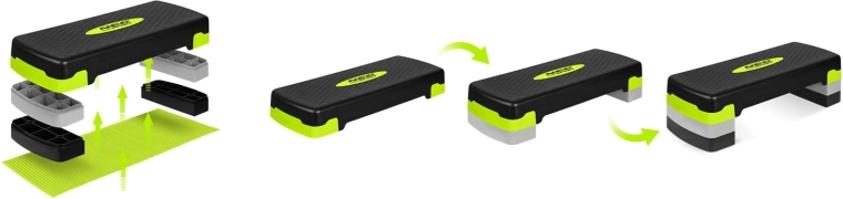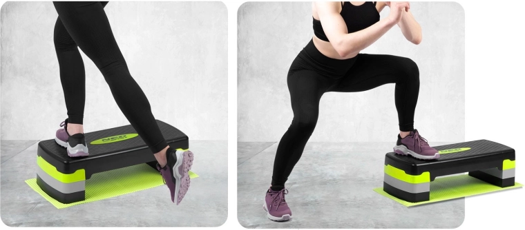Step je skvělý pro spalování kalorií, tvarování dolních končetin a hýždí, ale také pro posílení paží a trupu (dipy, kliky, plank). Díky kompaktním rozměrům a možnosti uložit nástavce pod tělo stepu jej snadno uskladníte i v menším bytě. Bonusová protiskluzová podložka zlepší přilnavost a ochrání vaši podlahu.