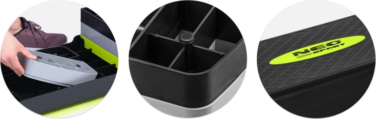 Trénujte efektivně a bezpečně s robustním aerobic stepem NEO SPORT. Díky nastavitelným nástavcům snadno změníte intenzitu cvičení, zatímco protiskluzová textura a stabilní základna zajistí jistý krok při každém pohybu. Materiál je odolný, voděodolný a snadno omyvatelný, takže se step hodí pro každodenní domácí použití.