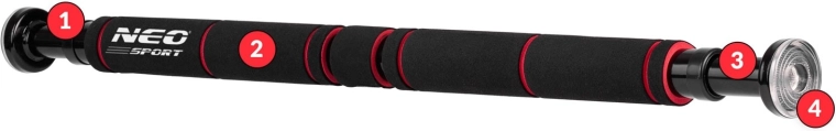 Proměňte běžný dveřní otvor v domácí posilovnu s rozpěrnou hrazdou NEO SPORT. Díky nastavitelné délce 60–85 cm, pevné ocelové konstrukci a pohodlným protiskluzovým pěnovým úchopům je trénink zad, paží a ramen bezpečný a komfortní. Gumové koncovky chrání zárubně a zvyšují jistotu montáže, přiložené bezpečnostní držáky zvyšují stabilitu při náročnějších cvicích.