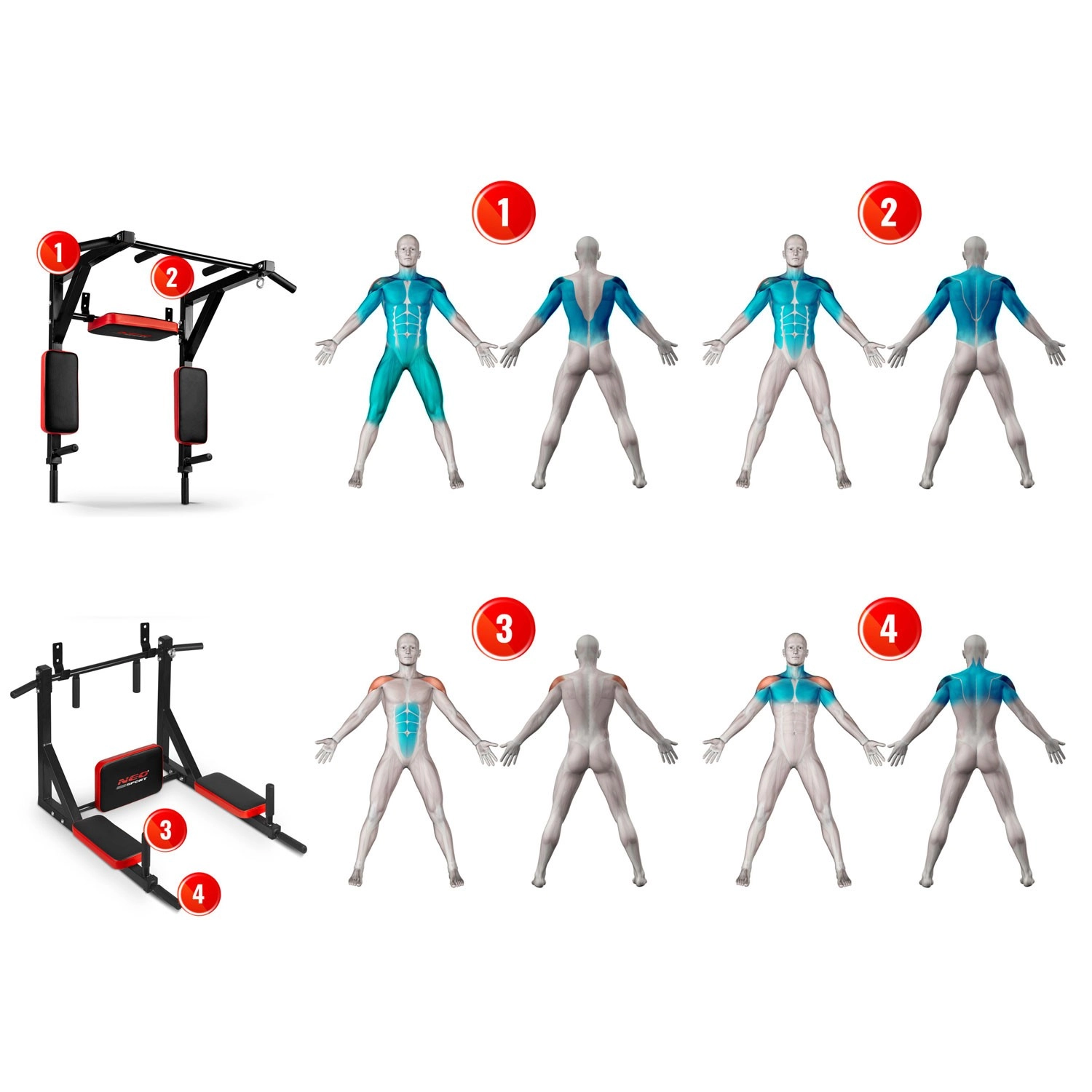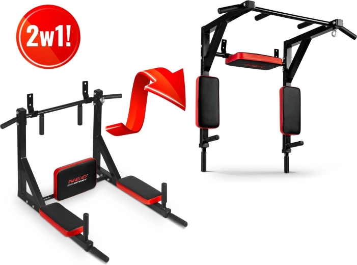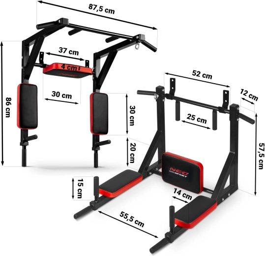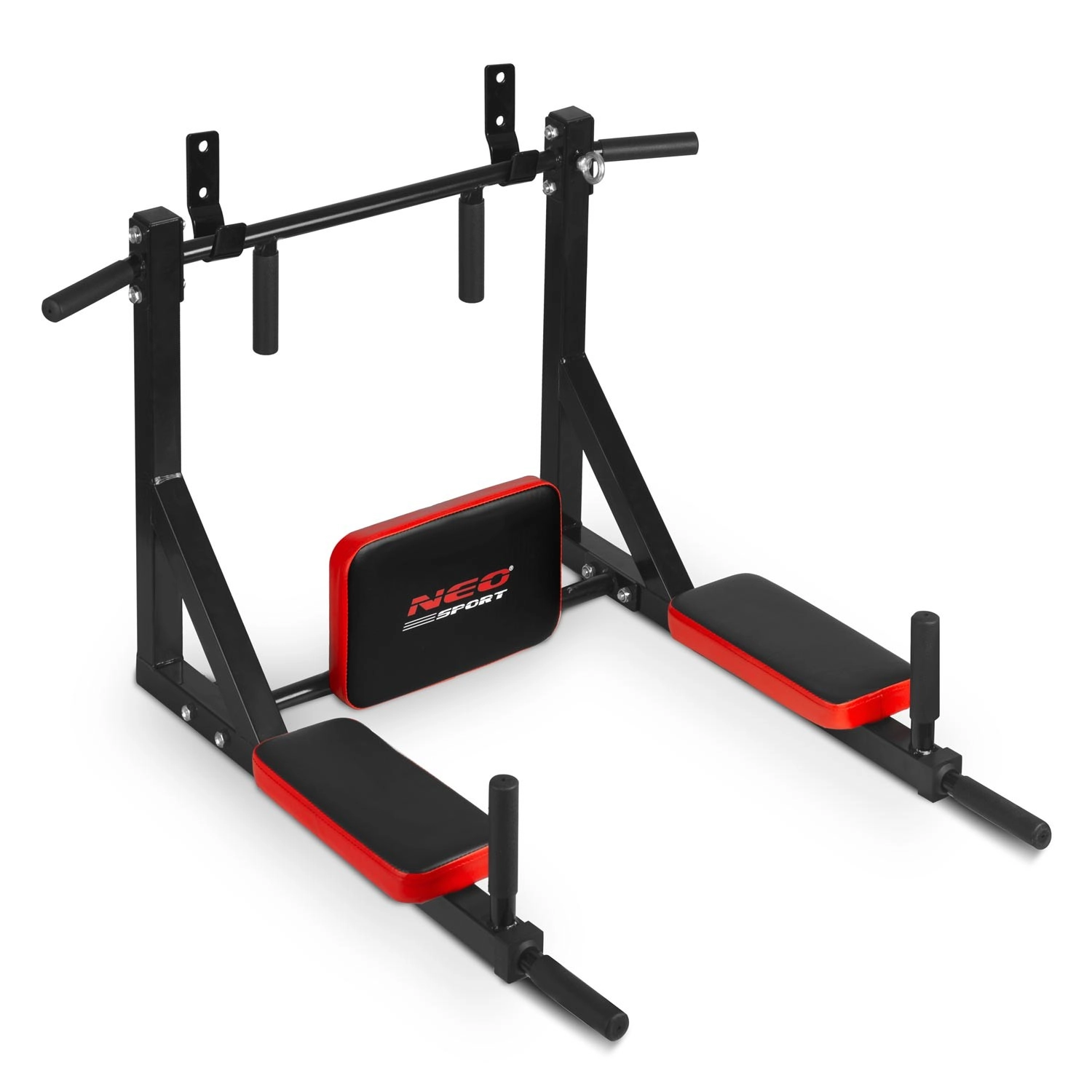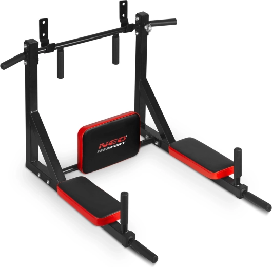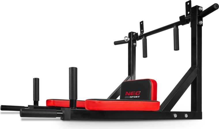 Nástěnná hrazda s opěrkou NEO SPORT NS-319 je univerzální řešení pro domácí silový trénink. Pevný ocelový rám s komfortními polstrovanými opěrkami na paže a záda poskytuje stabilitu a pohodlí při cvicích jako jsou přítahy, dipy, zvedání kolen i nohou. Osm protiskluzových úchopů podporuje bezpečný a variabilní trénink.