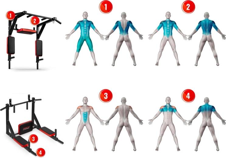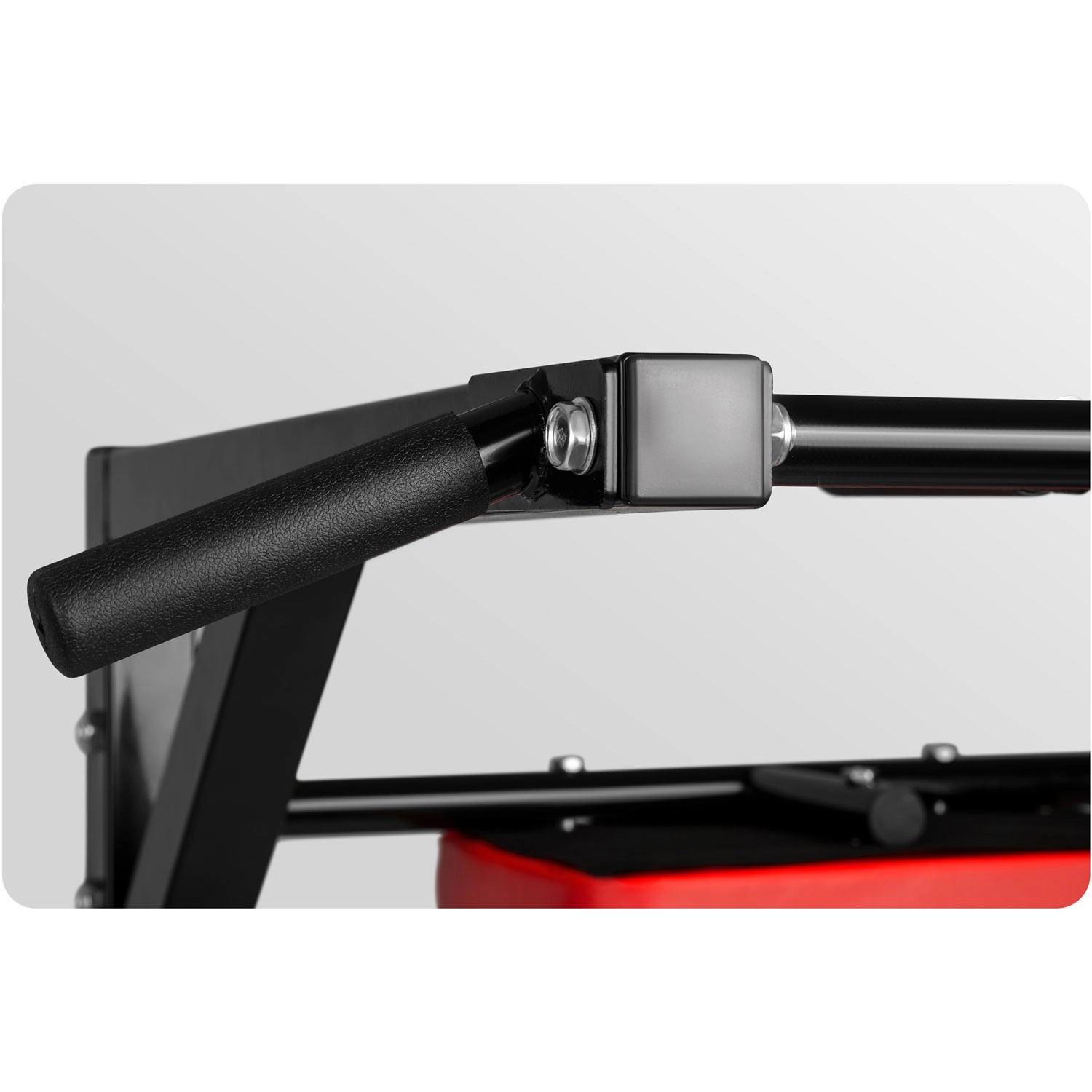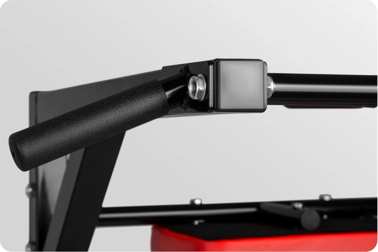 Polstrované opěrky zad a paží chrání při dipách a zvedání nohou. Různé šířky a úhly úchopu rozšiřují škálu cviků.