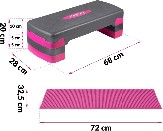 Aerobic step NEO-SPORT přináší variabilní trénink pro začátečníky i pokročilé. Díky třem úrovním nastavení snadno upravíte intenzitu cvičení – od dynamického kardia přes silové cviky až po balanční trénink. Protiskluzový povrch a jistý došlap zajišťují bezpečný pohyb i při rychlém tempu.
