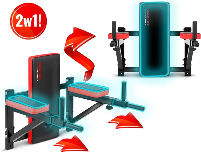 NEO SPORT NS-320 je spolehlivá nástěnná stanice pro dipy a zvedání kolen/nohou, která vám pomůže zpevnit střed těla, vyrýsovat paže a záda a spálit kalorie. Robustní ocelový rám, silné polstrování opěrky zad i podloketníků a čtyři protiskluzové rukojeti zajišťují stabilitu a pohodlí i při intenzivním tréninku.