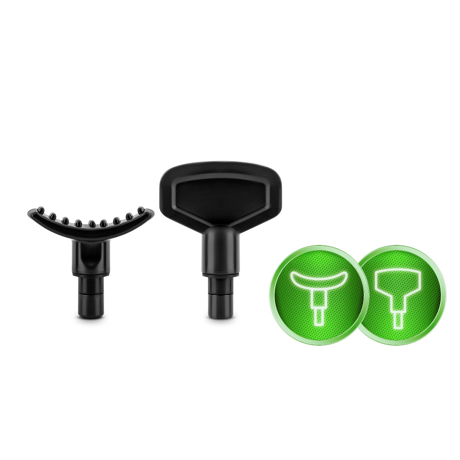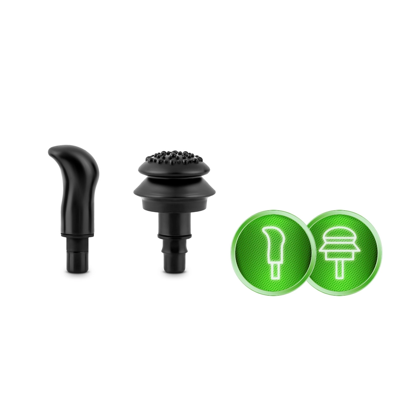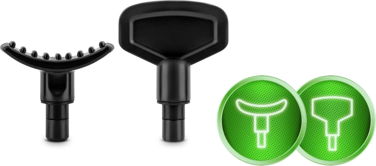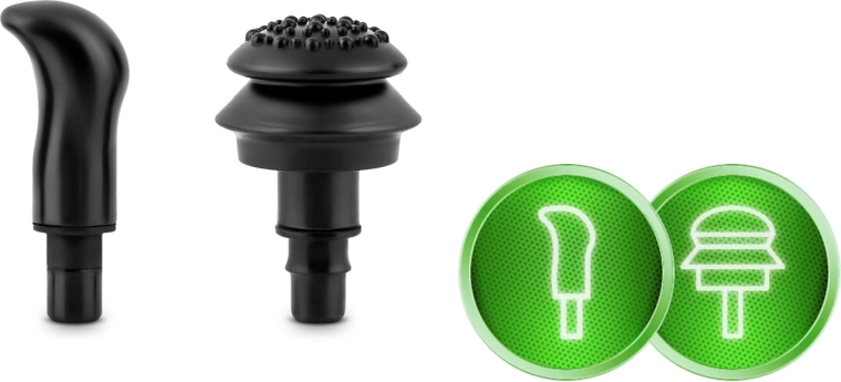 Vyberte si přesně ten nástavec, který vaše svaly potřebují: vidlička pro oblast kolem páteře a Achillovky, koule pro větší svalové skupiny, plochá hlavice pro ztuhlé části, střela pro intenzivní bodovou masáž a další speciální tvary pro zápěstí, citlivá místa či široké tahy.