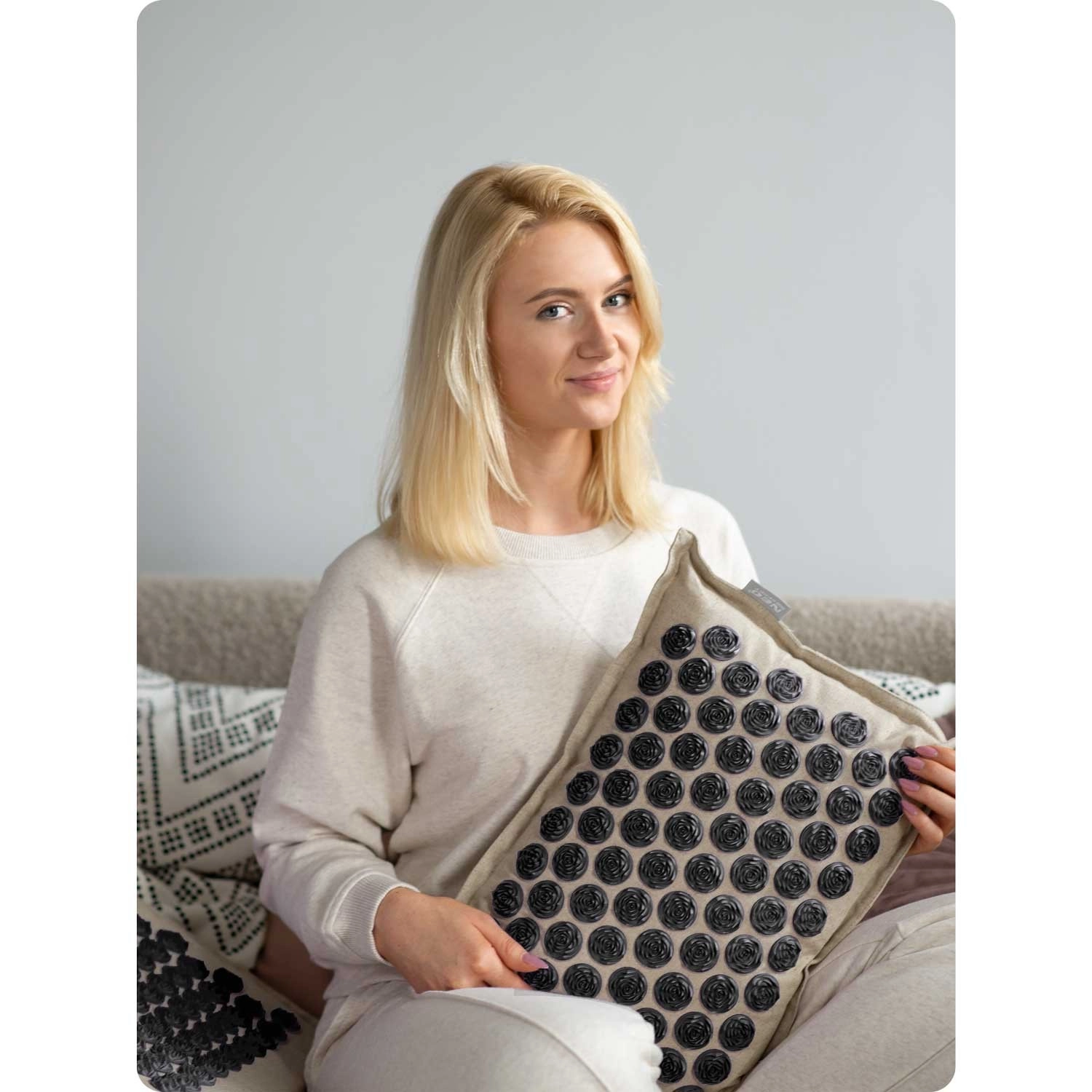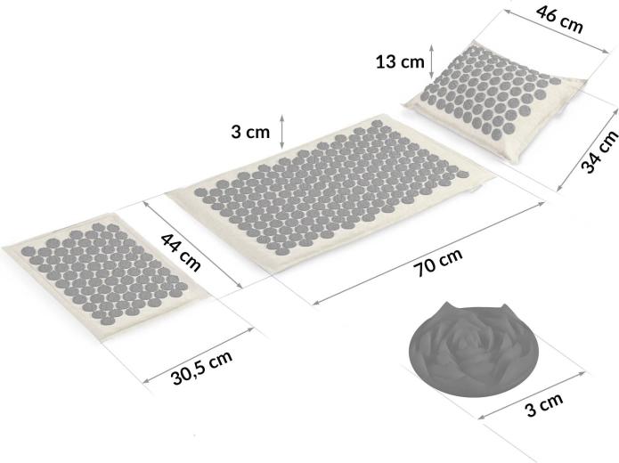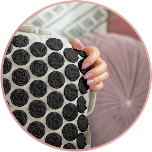 Hlavní podložka má 240 a polštářek 76 akupresurních růžic pro cílenou stimulaci tlaku – ideální pro záda, šíji i ramena.