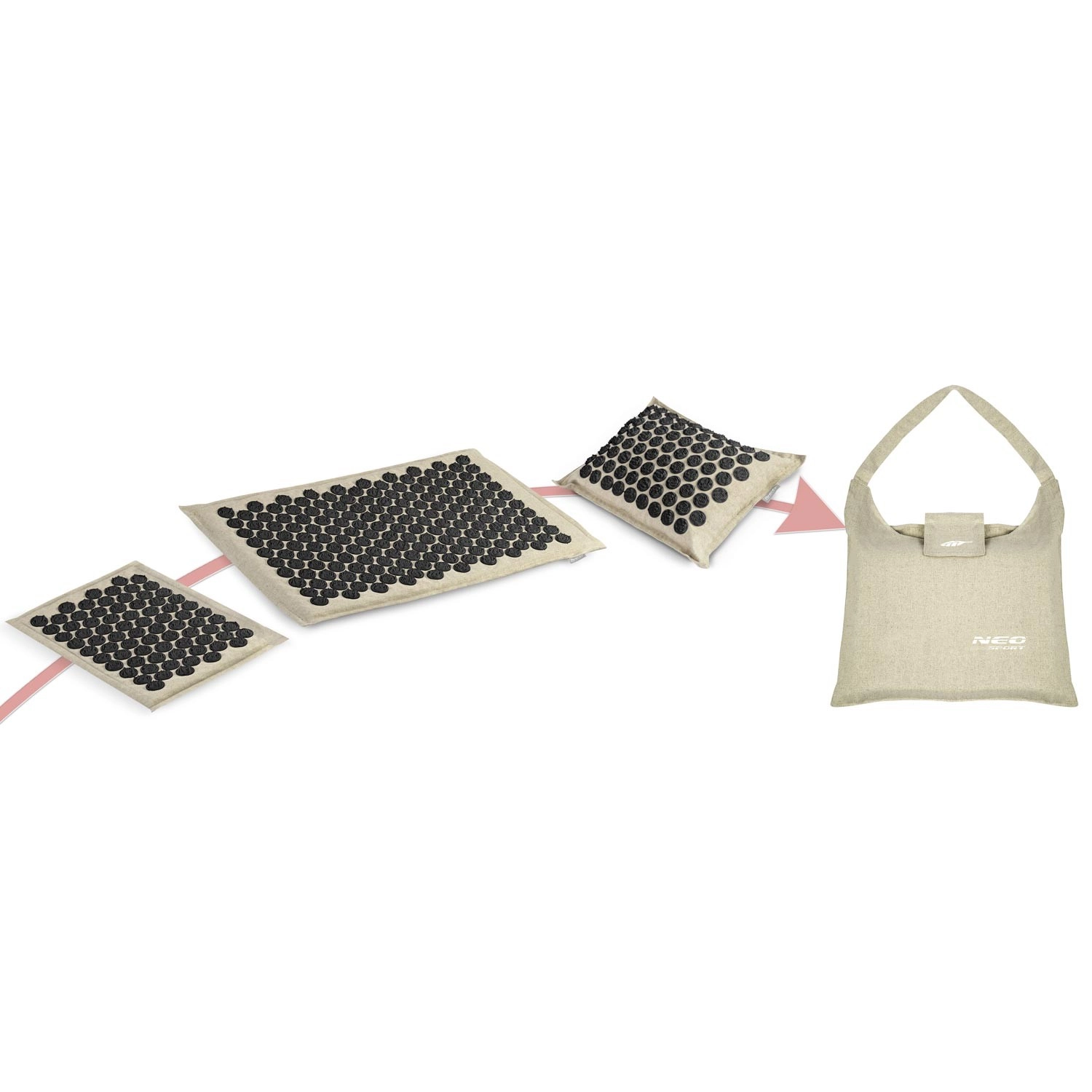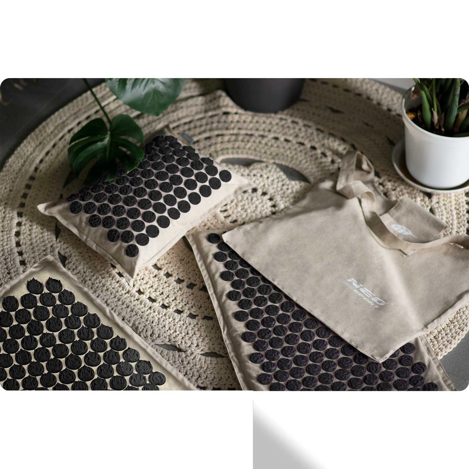 Akupresurní set NEO SPORT byl navržen pro každodenní relaxaci, podporu prokrvení a uvolnění svalového napětí v oblasti zad, krku a ramen. Hustě osazené plastové růžice s hroty působí na tlakové body, čímž mohou pomoci při bolestech hlavy a šíje, bolestech zad, při stresu či únavě. Díky dvěma podložkám a polštářku si snadno přizpůsobíte rozsah ošetřované plochy.