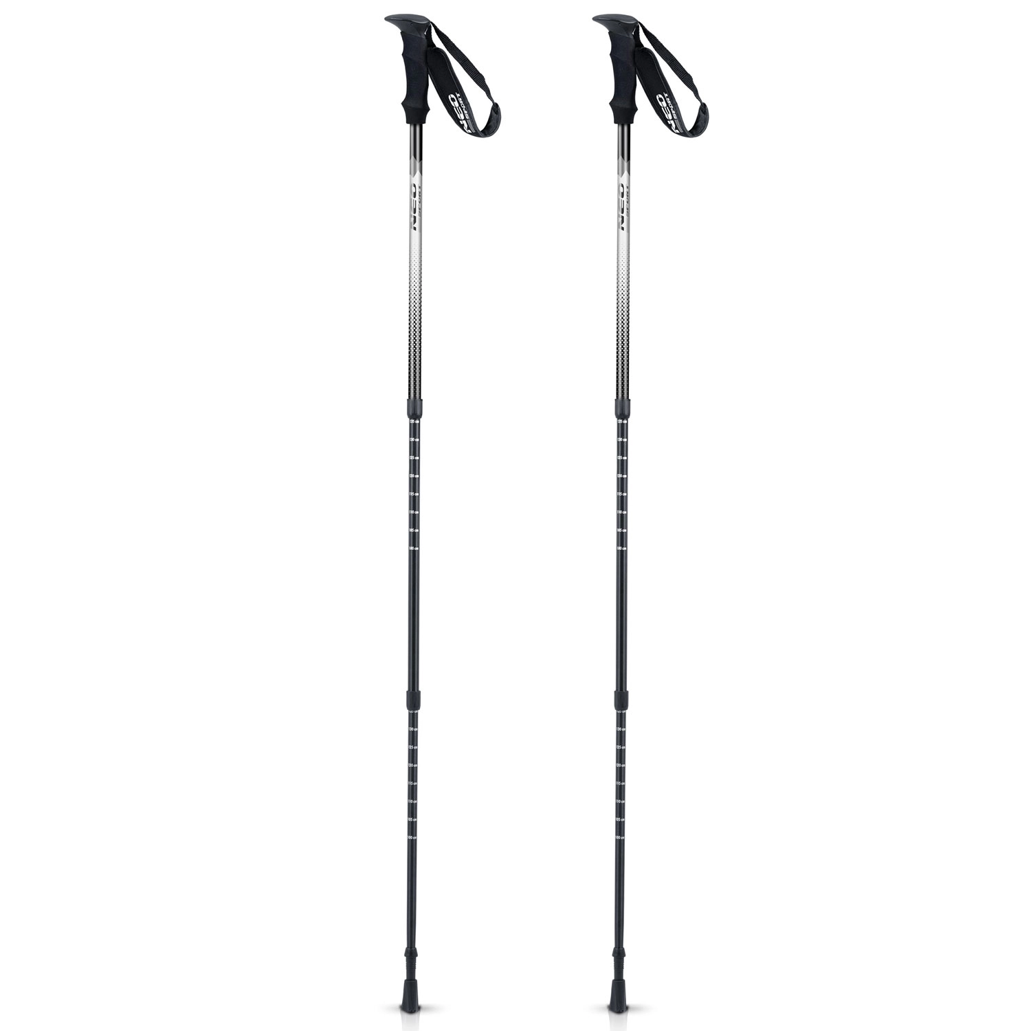 Třísegmentové nastavení s měřítkem umožní přesně doladit délku podle postavy i svahu. Složené hole (65 cm) snadno připnete na batoh nebo uložíte do pouzdra.