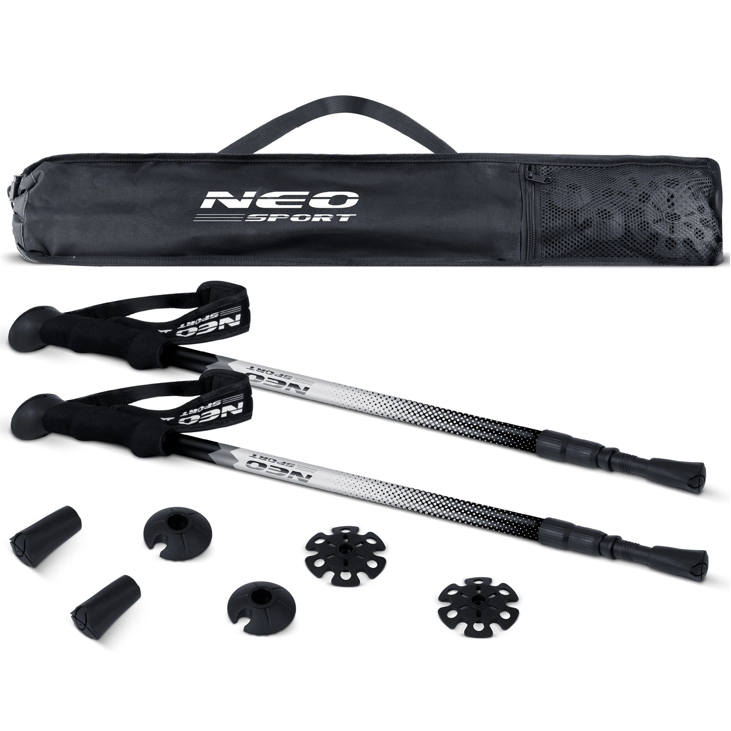 Integrovaný systém ANTISHOCK™ se pružinovým tlumením výrazně snižuje vibrace, šetří klouby a svaly a zvyšuje komfort při dlouhých výstupech i sestupech. Díky kompletní sadě zakončení zvládnete každý povrch – od městského asfaltu přes sypké stezky až po zasněžené pláně. Vše snadno uložíte do praktického pouzdra, které je součástí balení.