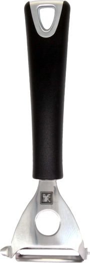 Tato univerzální škrabka je skvělým pomocníkem pro snadné a efektivní loupání brambor, mrkve, okurek či jablek. Díky ergonomické černé rukojeti se pohodlně drží a zajišťuje jistý úchop i při delším používání. Ostrá čepel umožňuje plynulé a přesné odstraňování slupky s minimální námahou.