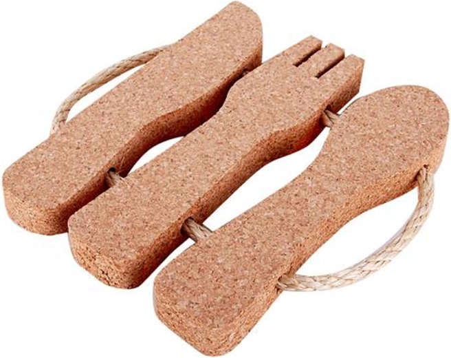 Tato dekorativní podložka z přírodního korku je navržena ve tvaru příborů, což z ní dělá originální doplněk do každé kuchyně či jídelny. Poskytuje spolehlivou ochranu povrchů před horkými nádobami a zároveň dodá prostřenému stolu jedinečný vzhled.