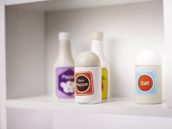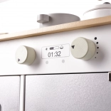 Dvě plotýnky s otočnými knoflíky, trouba s průzorem a potiskem časovače a praktická mikrovlnka. Děti si bezpečně vyzkoušejí, jak fungují skutečné spotřebiče.