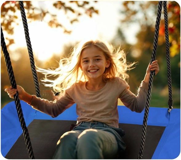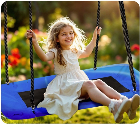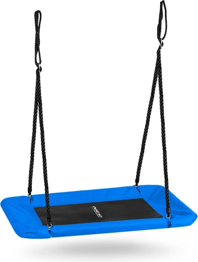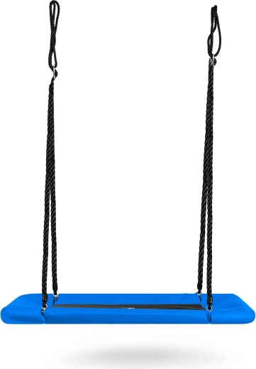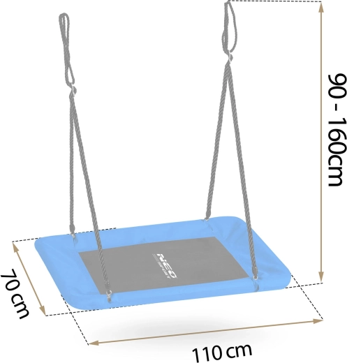 Velká obdélníková houpačka typu „hnízdo“ nabízí prostorné a pohodlné sezení pro děti i dospělé. Díky voděodolnému sedáku Oxford 600D, silnému ocelovému rámu s pěnovým opletem a pevný́m nastavitelným lanům je ideální pro bezpečnou venkovní zábavu. Snadno se čistí a unese až 150 kg.