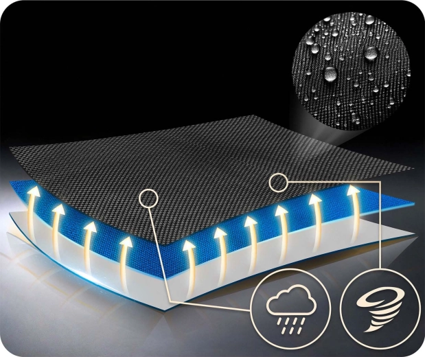 Pevná textilie odolá dešti i intenzivnímu používání, udrží tvar a barvy a čištění zvládnete během chvilky.