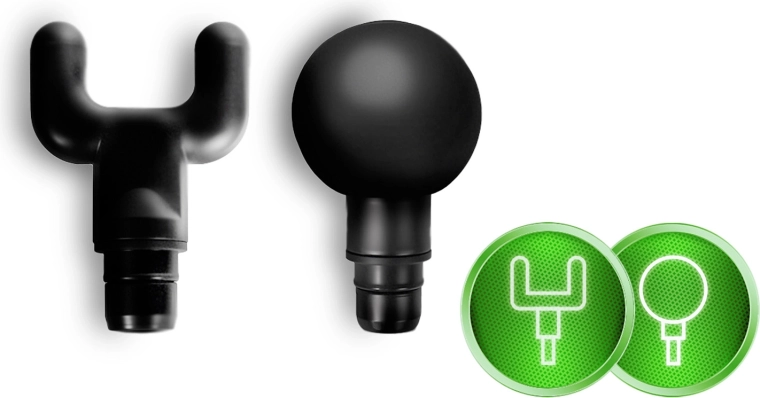 U‑hlava pro oblast kolem páteře, kulová pro větší svalové skupiny, plochá pro všestrannou relaxaci, hrot pro intenzivní bodovou masáž, chladicí gelová, lopatková pro podél kostních struktur, prstová pro přesný tlak, dvojitá hříbková pro prokrvení a měkká hříbková pro citlivé partie.