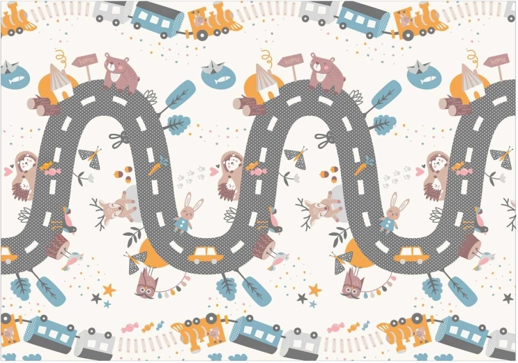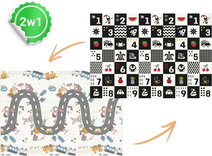 - Oboustranný potisk – vzdělávací kontrast + hrací silnice se zvířátky.