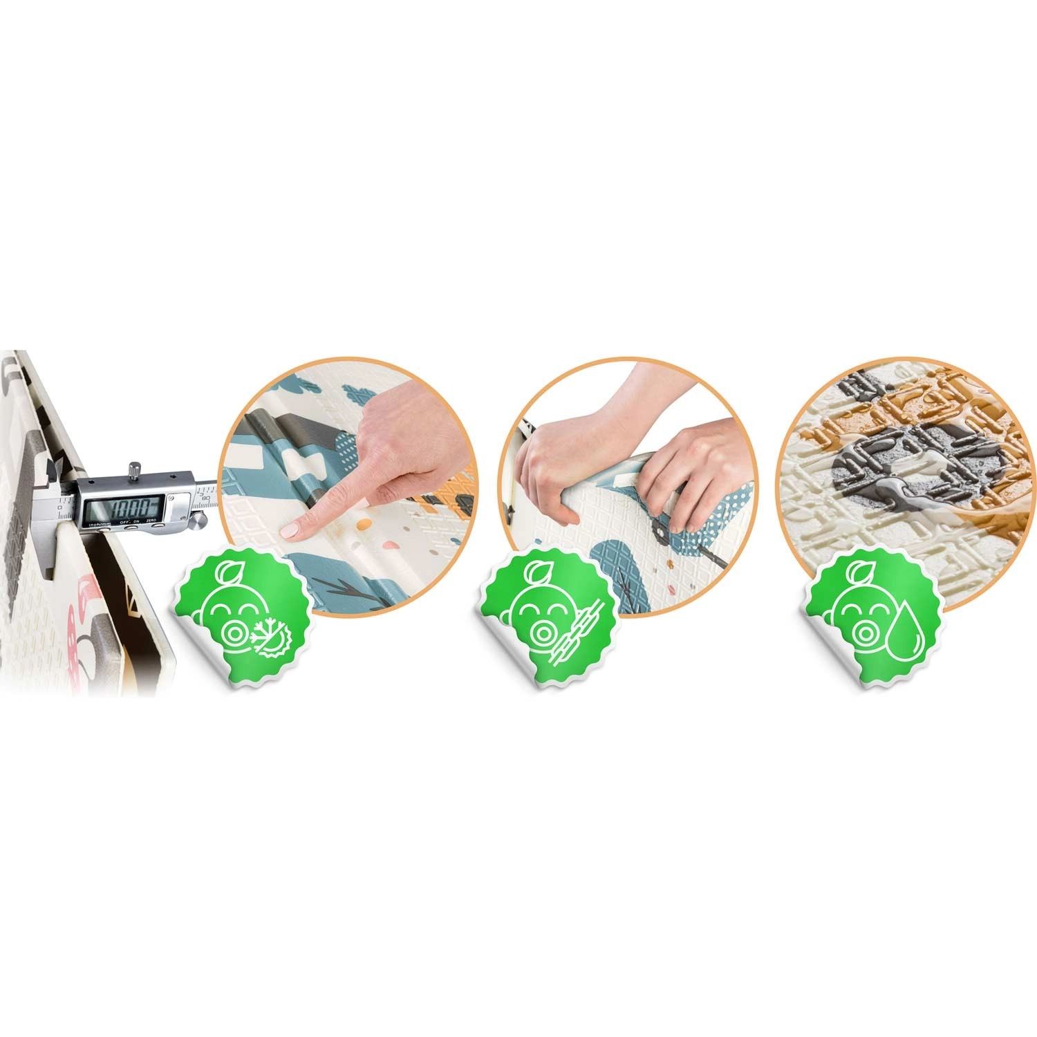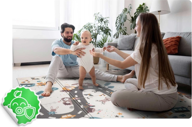 Hustá pěna XPE s protiskluzovou texturou chrání při pádech, izoluje od chladu a poskytuje stabilní povrch pro první krůčky.