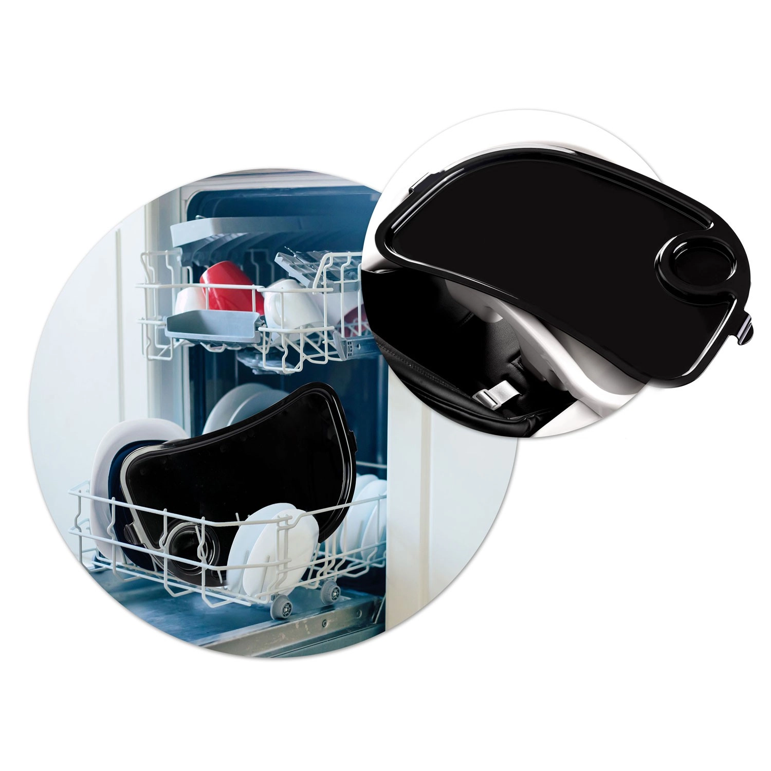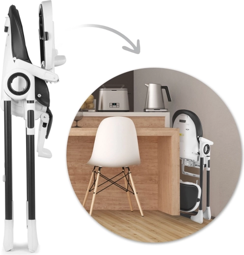 Odnímatelný pult s vyvýšeným okrajem a držákem na nápoj usnadňuje krmení i úklid. Vložku lze sejmout a omýt pod tekoucí vodou – rychle a bez starostí.