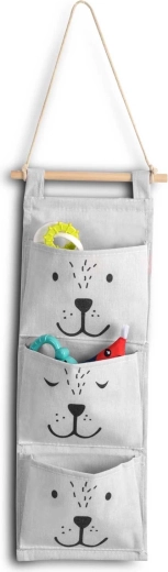 Závěsný organizér Nukido je chytré řešení pro přehledné ukládání hraček, doplňků a dalších drobností. Tři hluboké kapsy s roztomilými zvířecími motivy udrží vše na svém místě a díky vertikálnímu designu nezabírají cenný prostor na podlaze. Kvalitní bavlněný materiál je příjemný na dotek a snadný na údržbu.