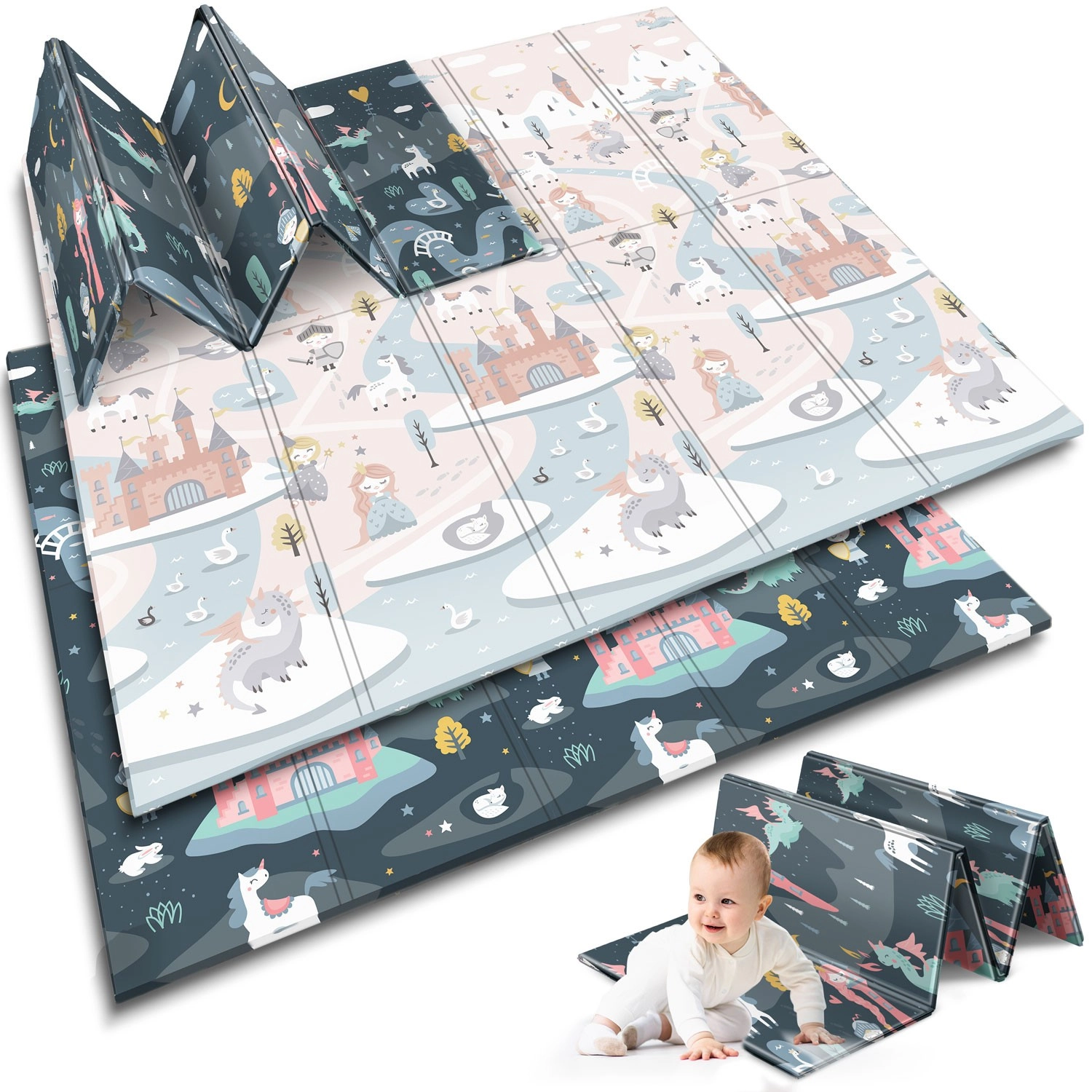 Skládací hrací podložka NUKIDO z prémiové bezzápachové pěny XPE vytváří měkký, protiskluzový a hygienický povrch pro batolata i předškoláky. Díky tloušťce 1 cm účinně absorbuje nárazy, chrání před tvrdou podlahou a poskytuje tepelnou izolaci. Oboustranný potisk nabízí dvě stylové varianty – jemné pastelové motivy i tmavší pohádkový design – aby podložka ladila s interiérem a děti bavila po delší dobu.