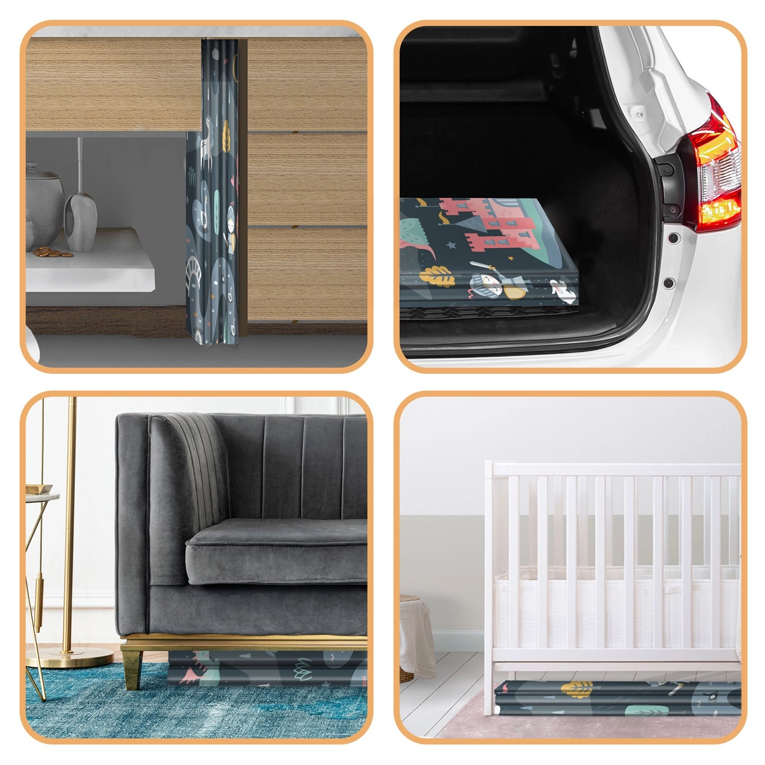 Dvě stylové strany – jemné pastelové motivy a výraznější tmavší pohádková grafika – podněcují vnímání barev a fantazii a zároveň ladí s jakýmkoli interiérem.