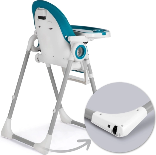 Odnímatelný tác s dodatečnou vložkou s vyvýšenými okraji brání rozlévání a lze jej mýt pod tekoucí vodou nebo vložit do myčky. Potah je odolný vůči nečistotám a snadno se čistí – stačí otřít. Díky kompaktnímu složení jedním pohybem a kolečkům v zadních nohách židličku hladce přemístíte.