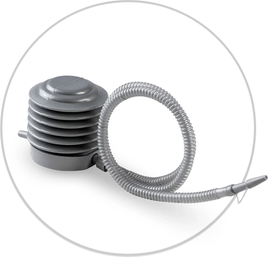 Součástí je praktická nožní pumpa se dvěma nástavci a 2 náhradními zátkami. Snadné nafouknutí i pravidelná údržba bez dalších nákupů.