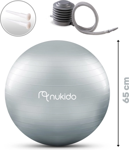 Šedý gymnastický míč NUKIDO 65 cm je navržen pro pohodlné posilování hlubokého stabilizačního systému, jemné protažení i relaxaci. Je skvělý pro těhotné ženy (úleva zad, správné držení těla, pohodlné sezení), ale i pro každého, kdo chce zlepšit rovnováhu, zvýšit stabilitu středu těla a podpořit zdravé sezení.