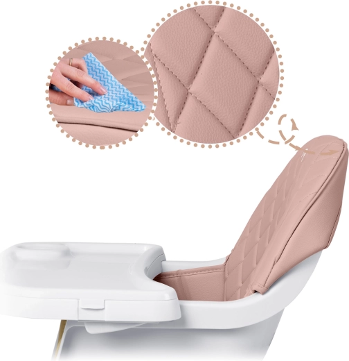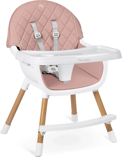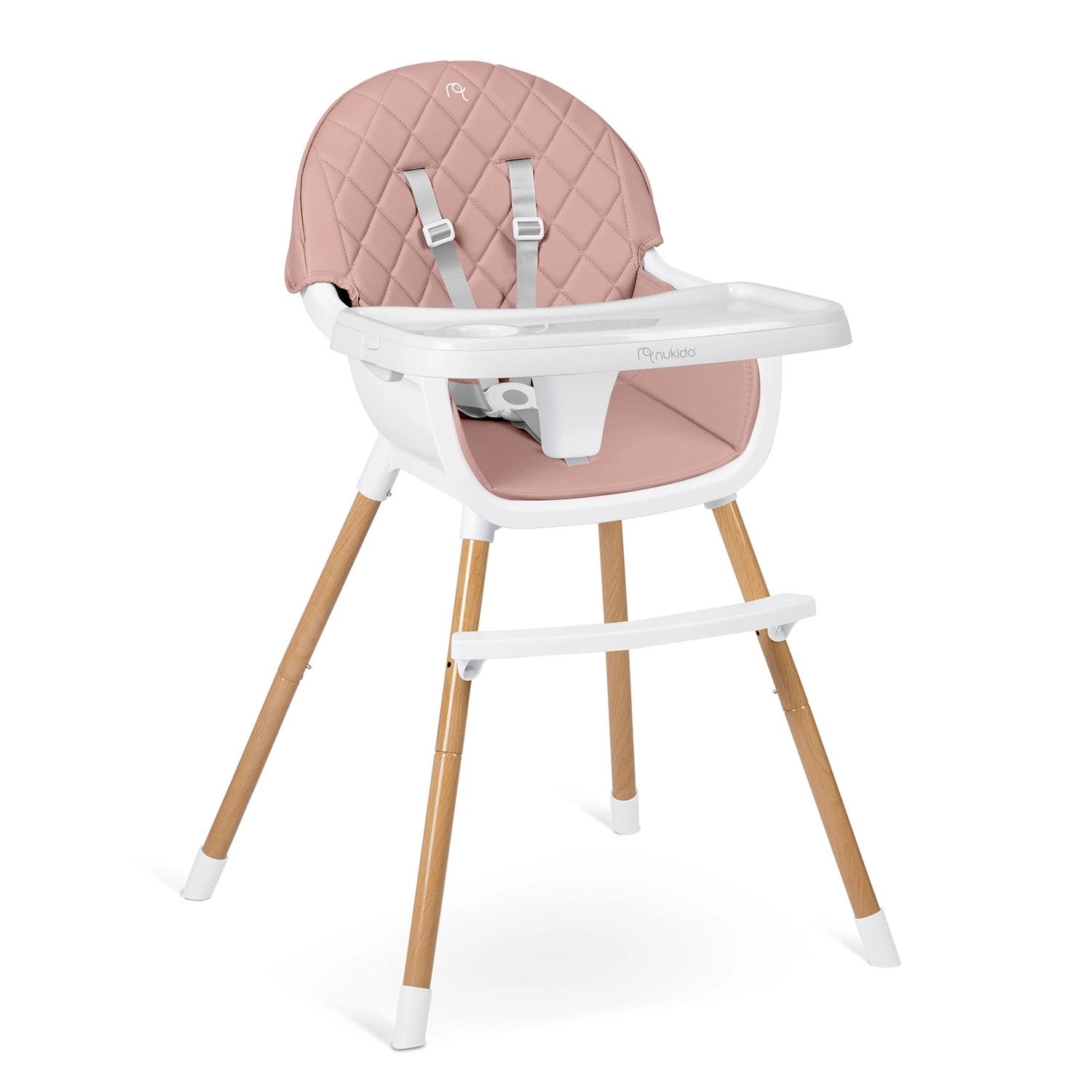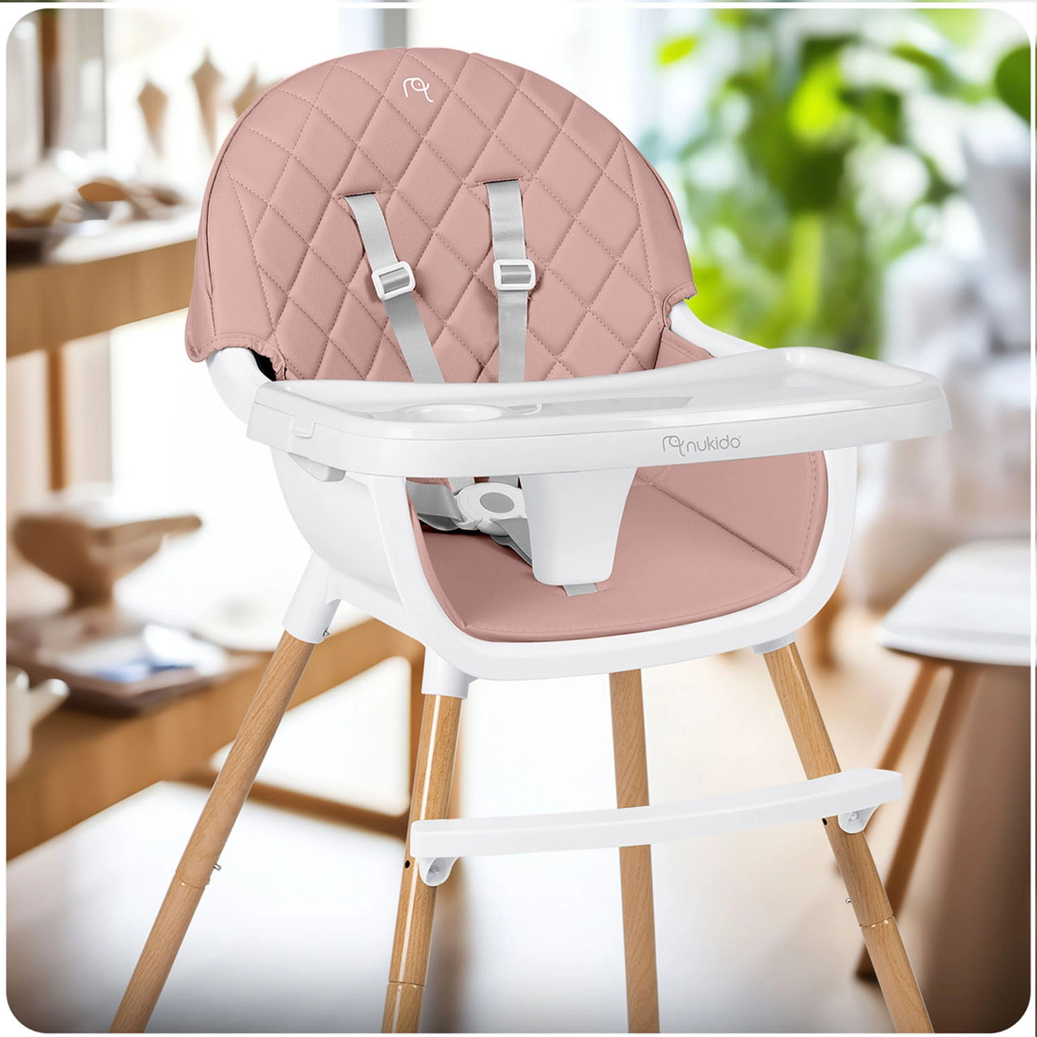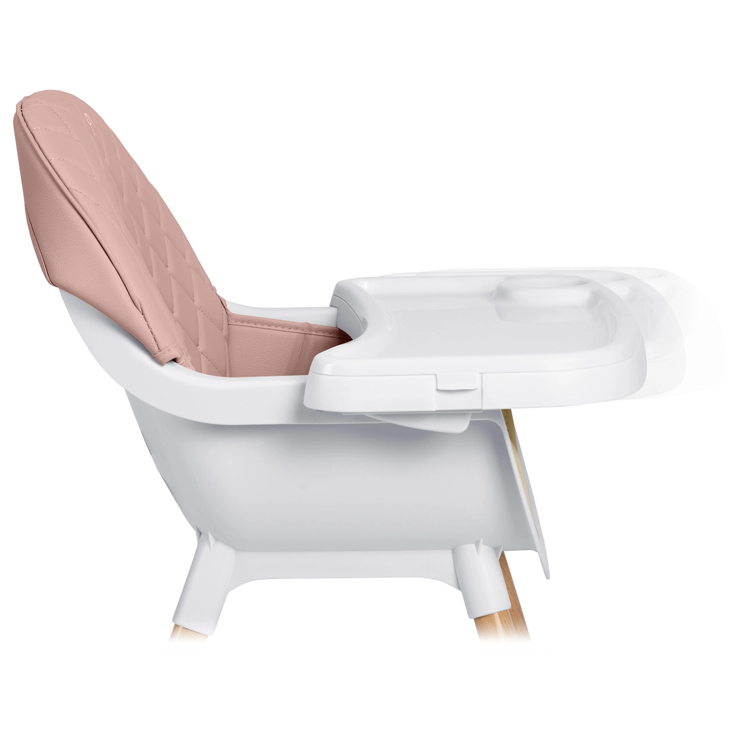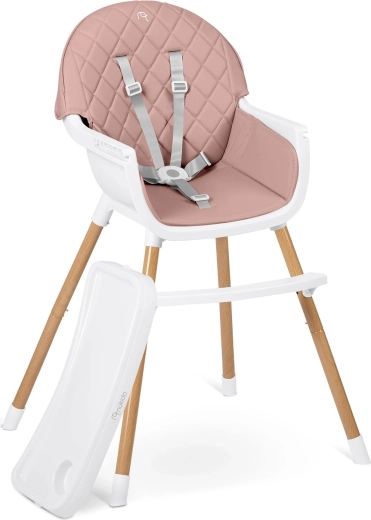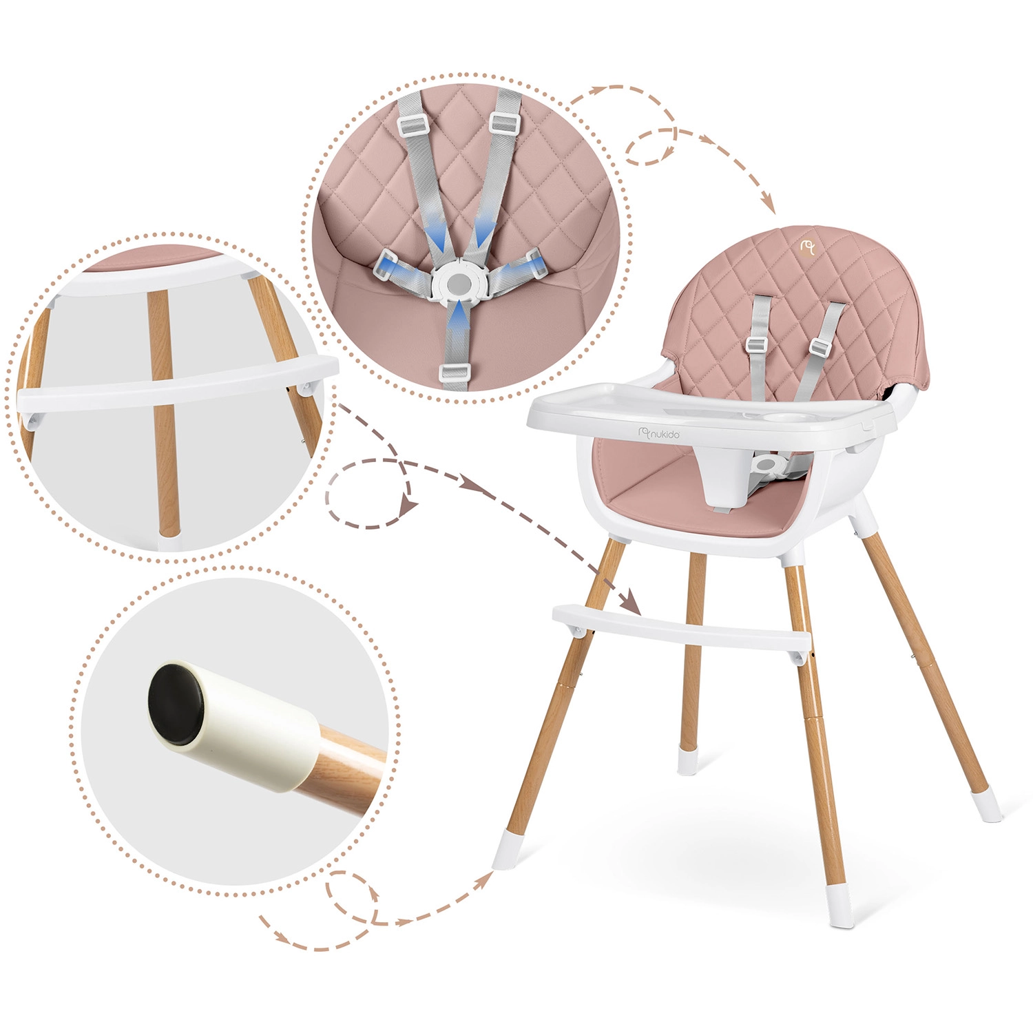 Bezpečí zajišťují 5bodové pásy, stabilní ocelové nohy s dřevodekorem a protiskluzové koncovky. Židlička splňuje přísnou evropskou normu EN 14988. Je ideální nejen pro krmení, ale také pro hru, kreslení a čtení – dítě sedí pohodlně a ve správné poloze.